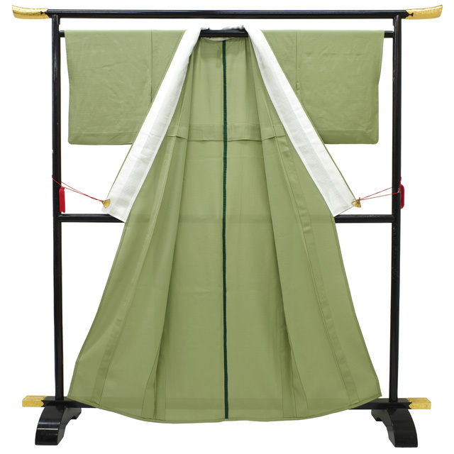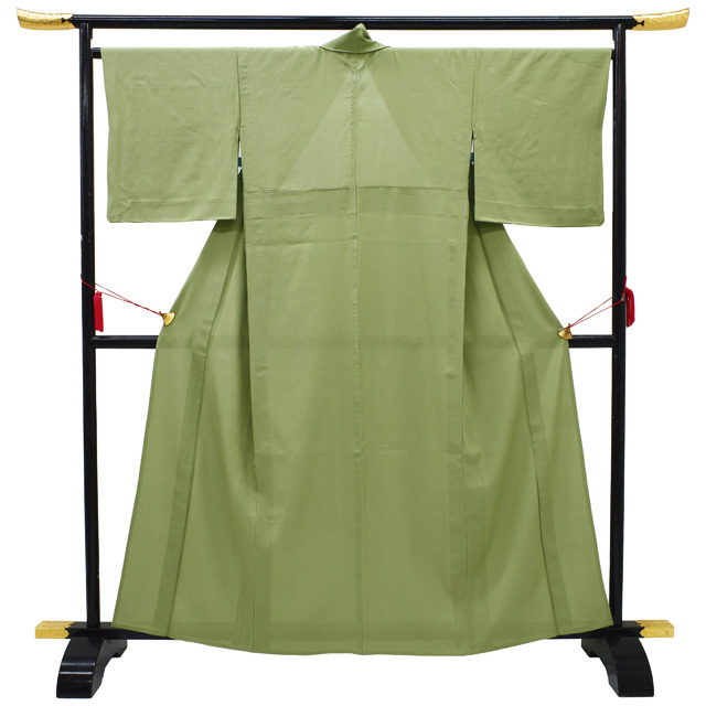 【中古】 すごい値! 夏物 色無地 リサイクル 着物 単衣 絽 正絹 柳染色 緑 グリーン 一つ紋 丸に五三桐 無地 透け感 セミフォーマル 上質 中古 仕立て上がり 身丈160 裄丈66.5 Mサイズ 夏 夏用 夏着物 リサイクル着物 お茶会 七五三 入学式 卒業式 など フォーマルシーンに たとう紙付き 送料無料 30代 40代 50代 60代 ~ 販売 購入 リユース すごいね みやがわ nek01564
