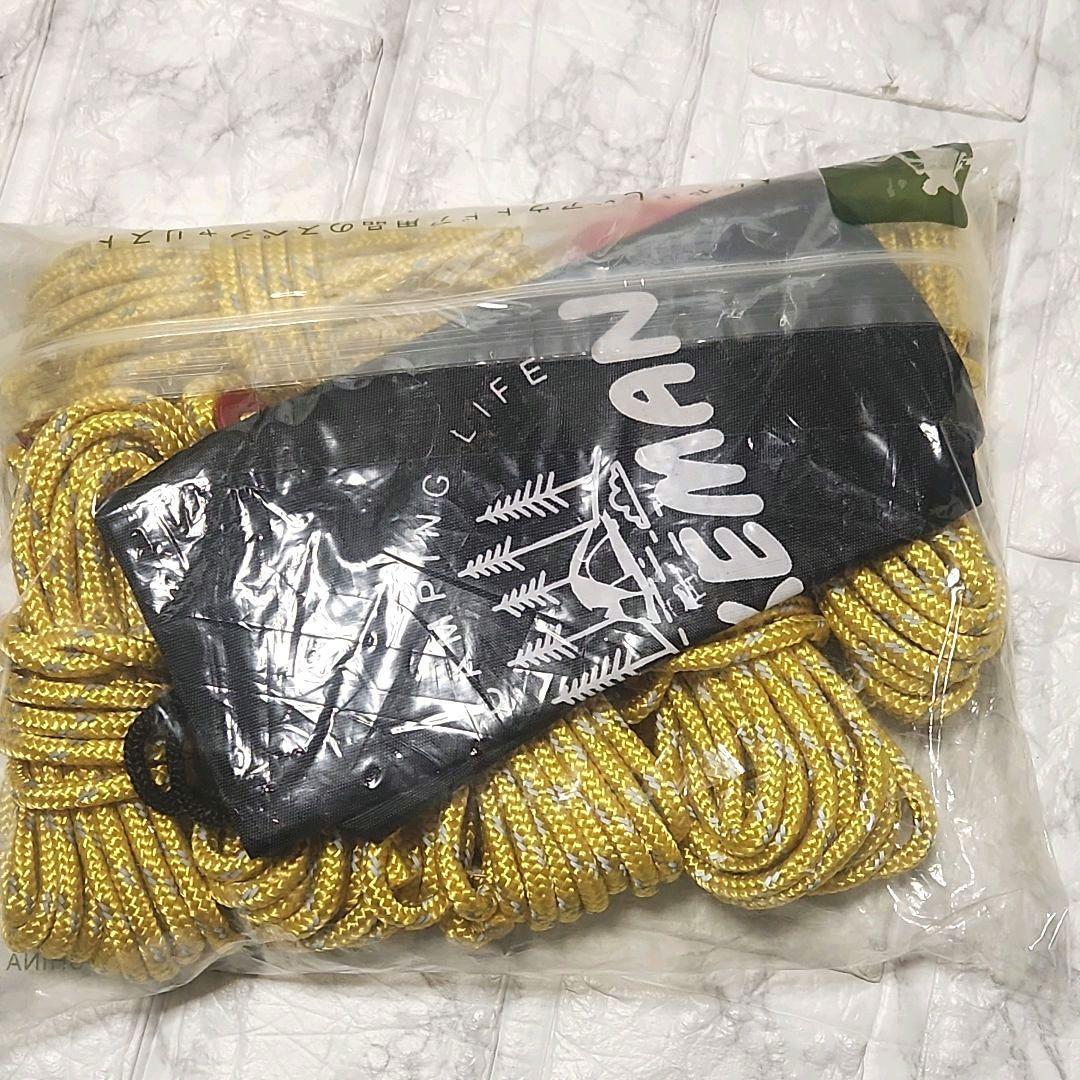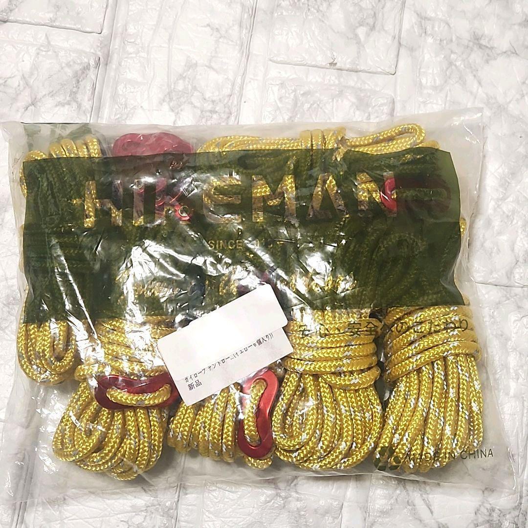 HIKEMANの黄色のテントロープ6本セット、耐久性に優れた設営用品。