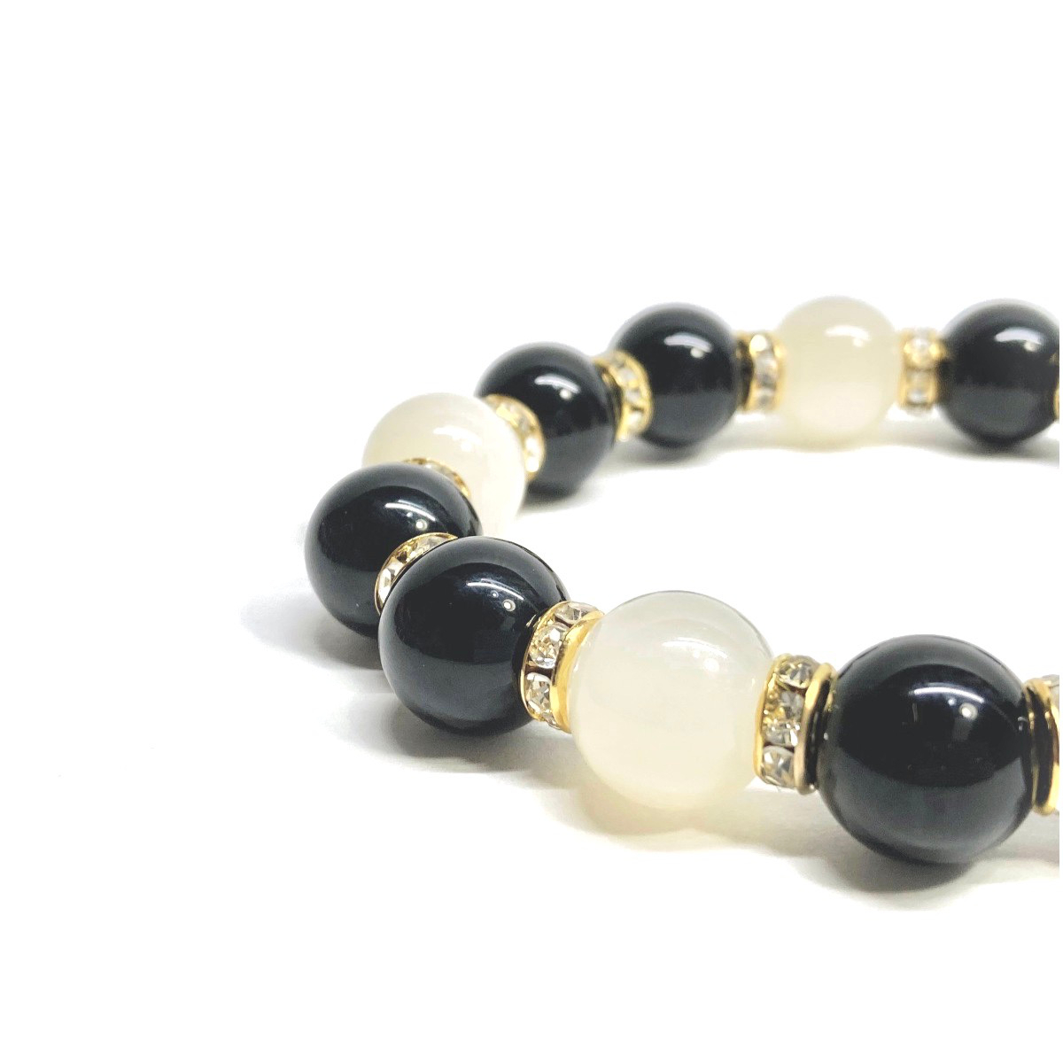 こちらは、モリオンとムーンストーンを組み合わせたパワーストーンブレスレットです。間にはロンデルを挟み高級感あるデザインに仕上げております。程よくインパクトがある12mm玉を使用して内周約18cmです。(サイズ変更の場合は取引ナビにてご連絡をお願いします。) 数に限りがございますので気になる方はお早めにどうぞ。
