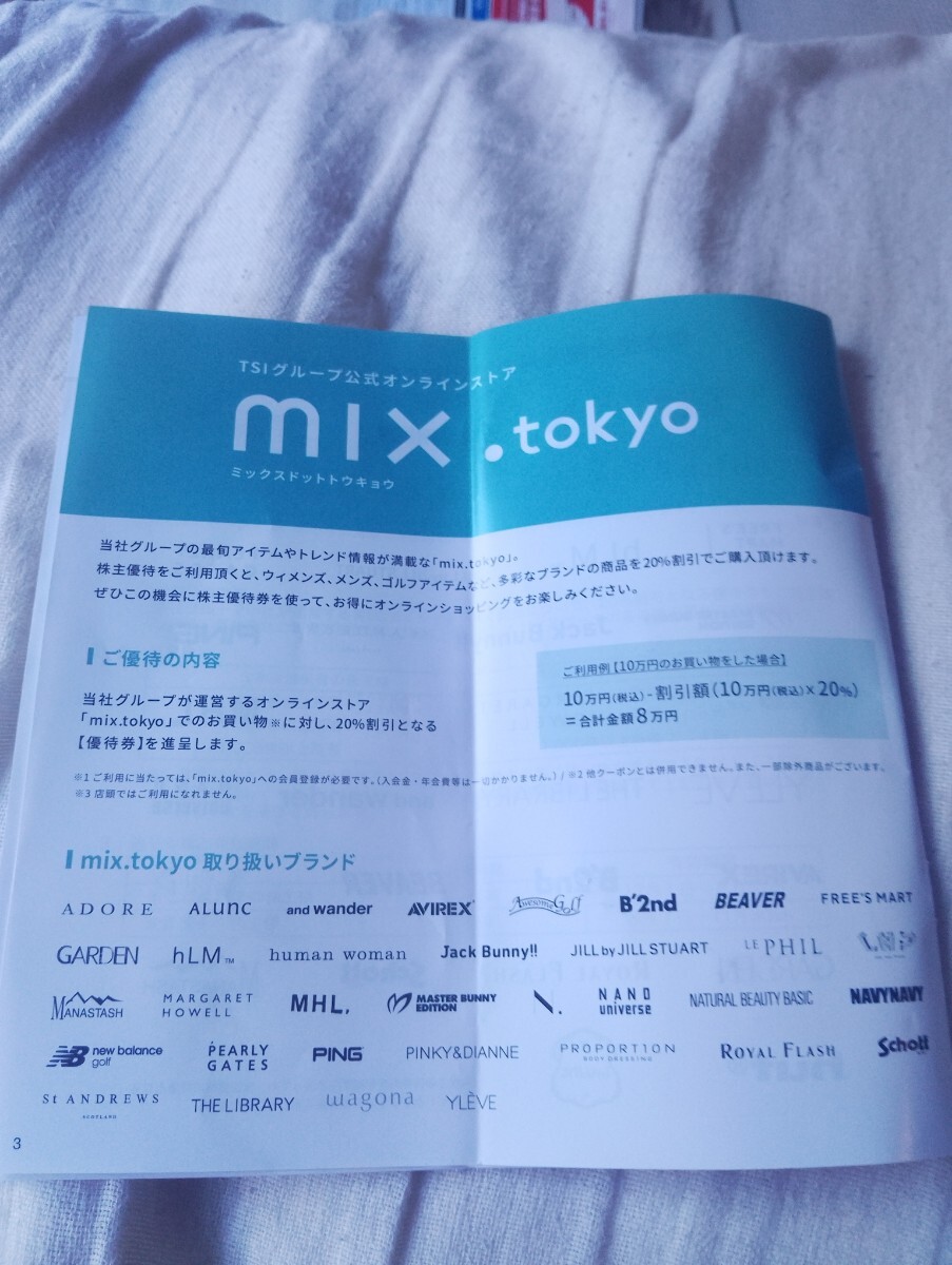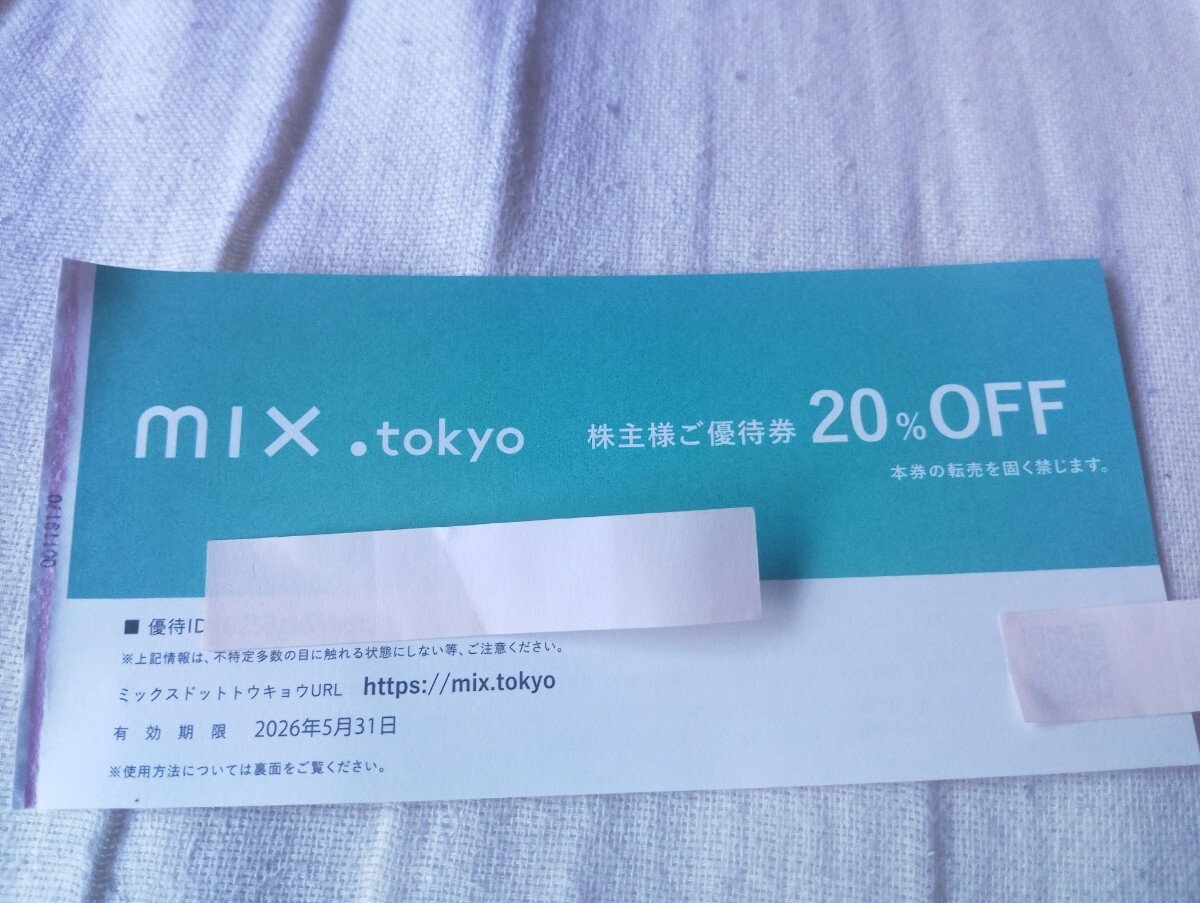 即決★ID通知無料☆最新★TSI株主優待券 MIX.Tokyo 20%OFF券 在庫2 オンライン★ミックスドットトウキョウ 2割引★有効期限2026年5月31日