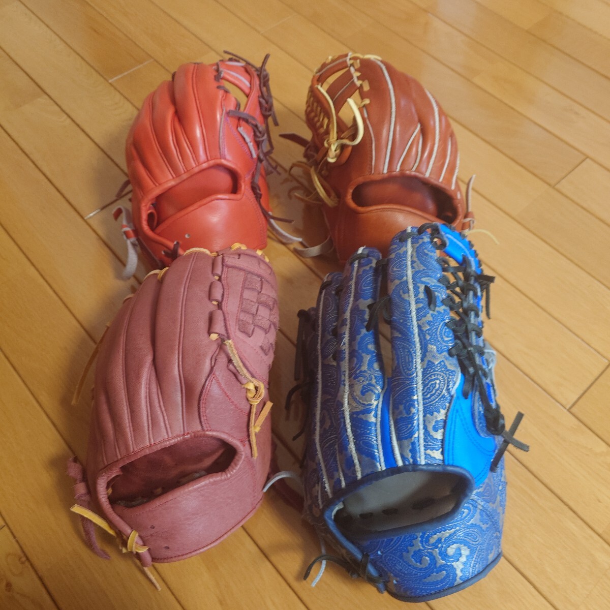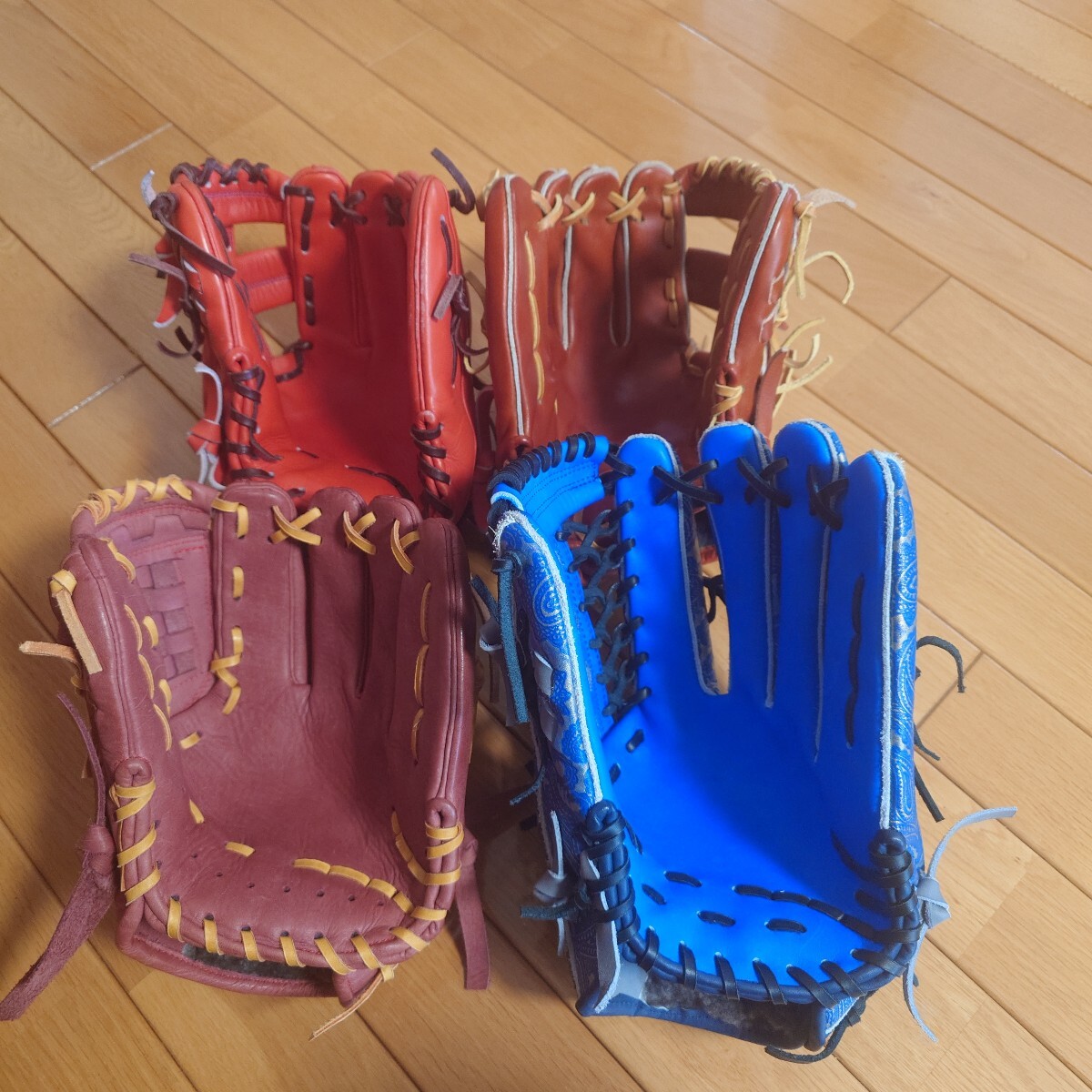 趣味で作製したグローブのセットになります。(内野×2、外野×1、左投げ×1)