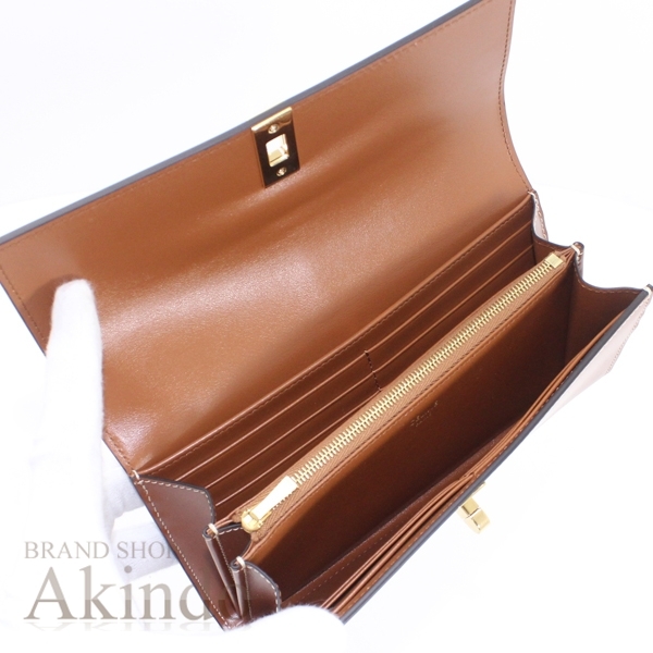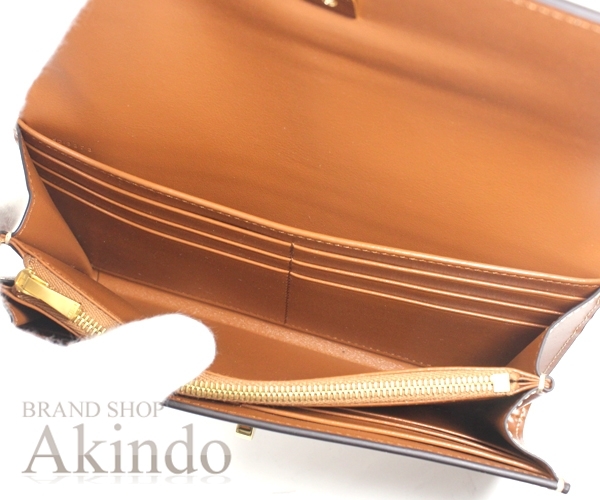 | セリーヌのラージ トリフォルドウォレット16 二つ折り長財布です。 上質のカーフレザーを使用し、象徴的なターンロック金具。 カード入れも多数あり、マチもあり機能性抜群です。 高級感のあるシャイニーカーフスキン仕様。 展示未使用品です。 フラップの金具に傷がございます。 詳細は写真にてご確認下さい。 KM3196 | |