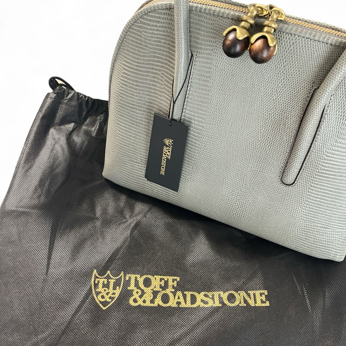 極美品】【ほぼ未使用】TOFF&LOADSTONE ハンドバッグ マジェスティポット グレー Mサイズ TL6720 型押し加工 保存袋付き