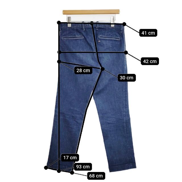 | 実寸サイズ | 総丈:約93cm ウエスト:約41cm 股上:約30cm 股下:約68cm ヒップ:約42cm ワタリ幅:約28cm 裾幅:約17cm ※採寸画像がある商品はハンガーに吊るした状態での計測のため、平置きでの採寸とは差が生じる場合がございます。平置きでの実寸サイズをご希望の場合は、ご購入前に必ずご質問ください。 ※記載以外のサイズが合わないことを理由とした返品はできませんので、 記載部分以外で実寸サイズの気になる箇所があれば必ず購入前にご質問ください。 |
