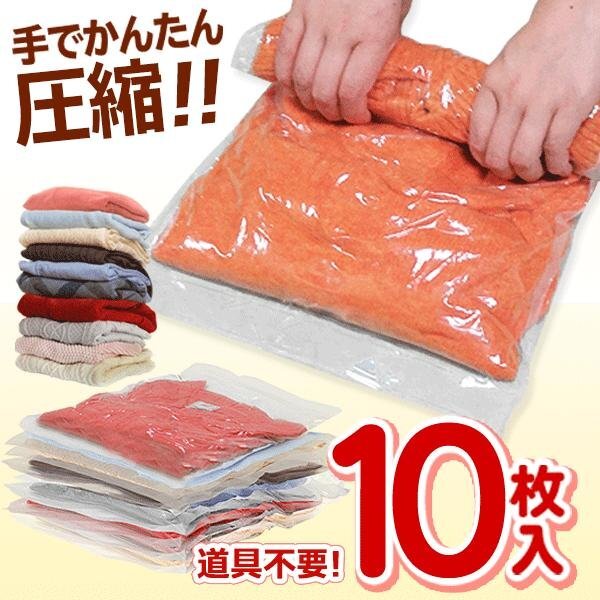 圧縮袋 10枚セット 防災 大量 手で巻くだけ 掃除機不要 タオル 衣類 小物 衣替え 梱包 旅行 引っ越し 送料無料 2M◇ 10枚圧縮袋