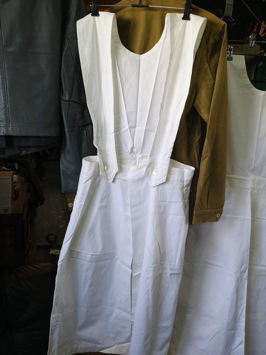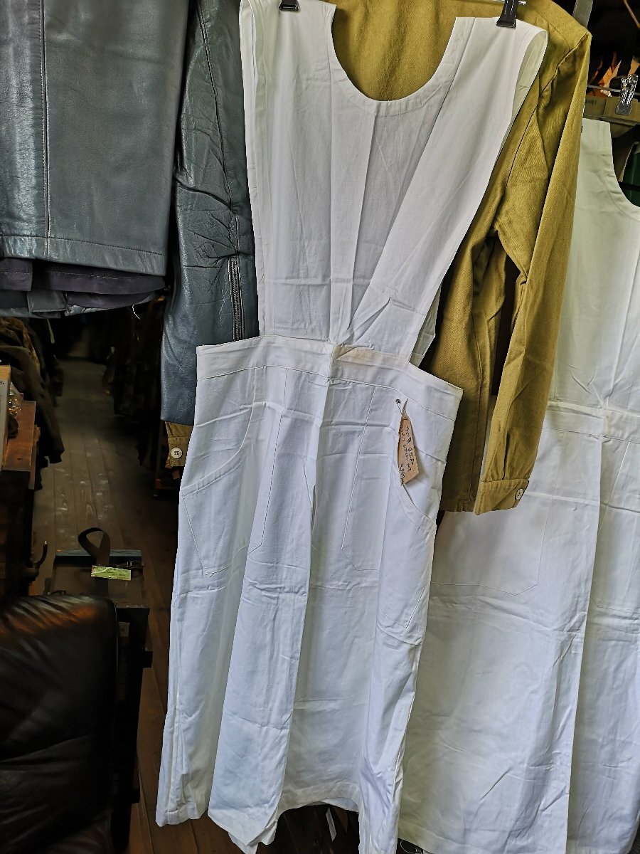 おそらく70年代頃のチェコ軍看護士用エプロンです。 非常に手触りのよい薄手のコットン素材です。 両サイドにポケットが付いています。 丈:115cm程度、横幅35~45cm程度。両サイドポケット付き。若干お腹のあたりや裾とかが黄ばんでいる感じです。 沖縄離島を除くネコポス便200円でお送りいたします、落札価格にプラスでお願いいたします。