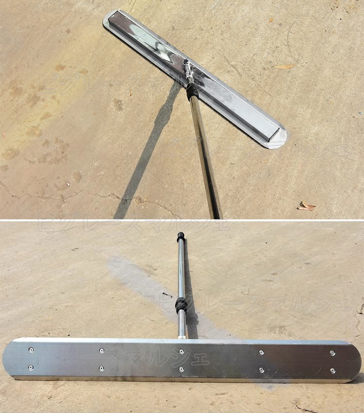 ■可搬式ハンドル(伸縮ハンドル)付きのアルミ製スクリード、磨き作業やスラリー引き上げ用の左官作業工具です。