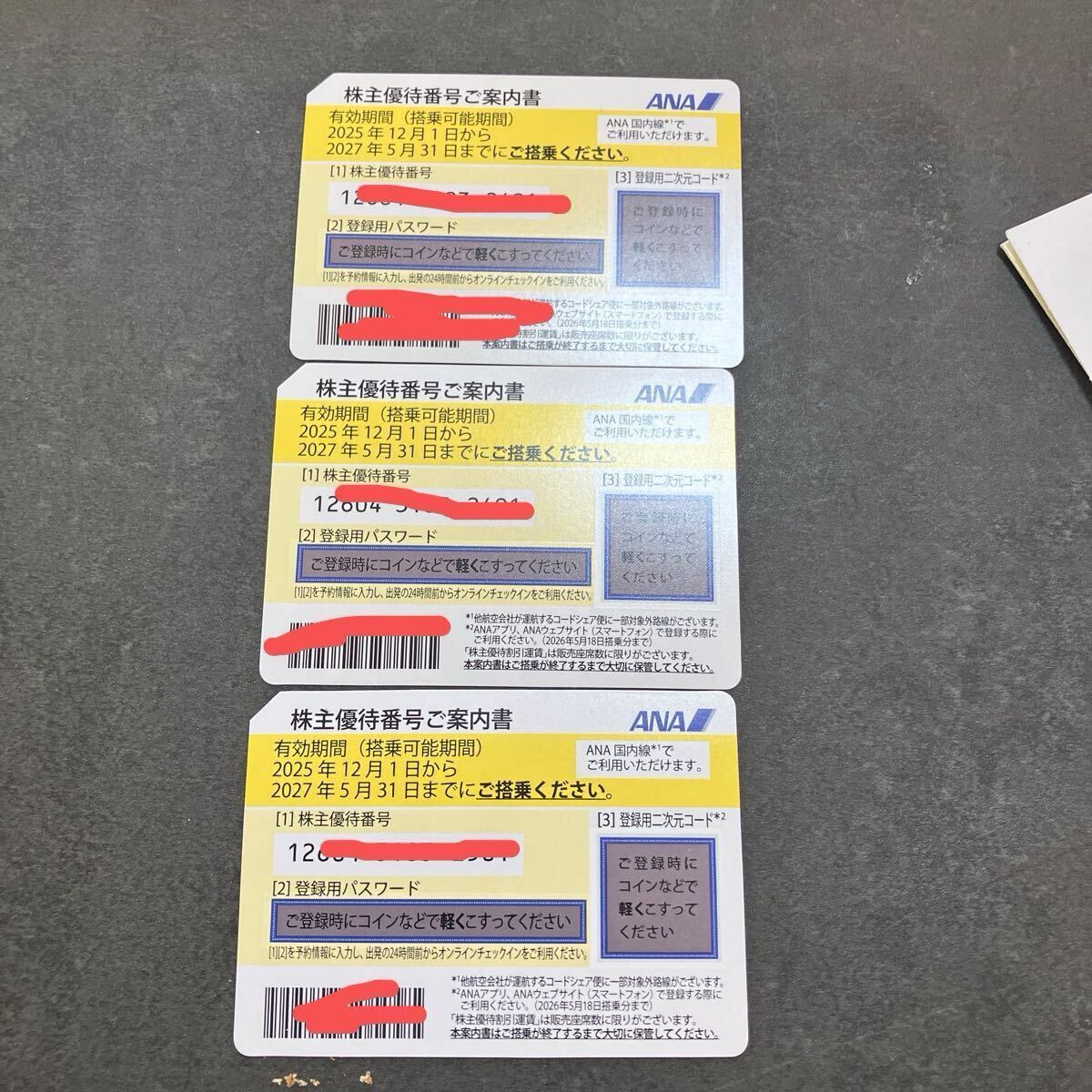 ANA【全日空】株主優待券 2025年12月1日~2027年5月31日まで 3枚 普通郵便にて送料無料 コード通知可 未使用
