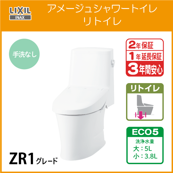 ★ LIXIL INAX アメージュシャワートイレ リトイレ(手洗なし) アクアセラミック仕様 ZR1グレード ★