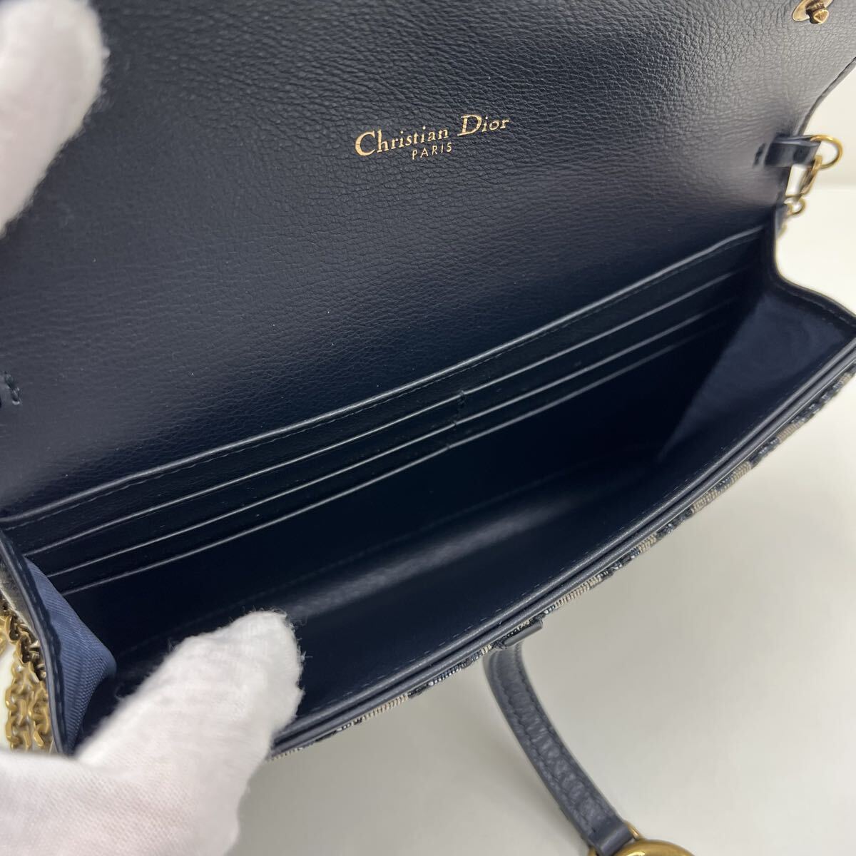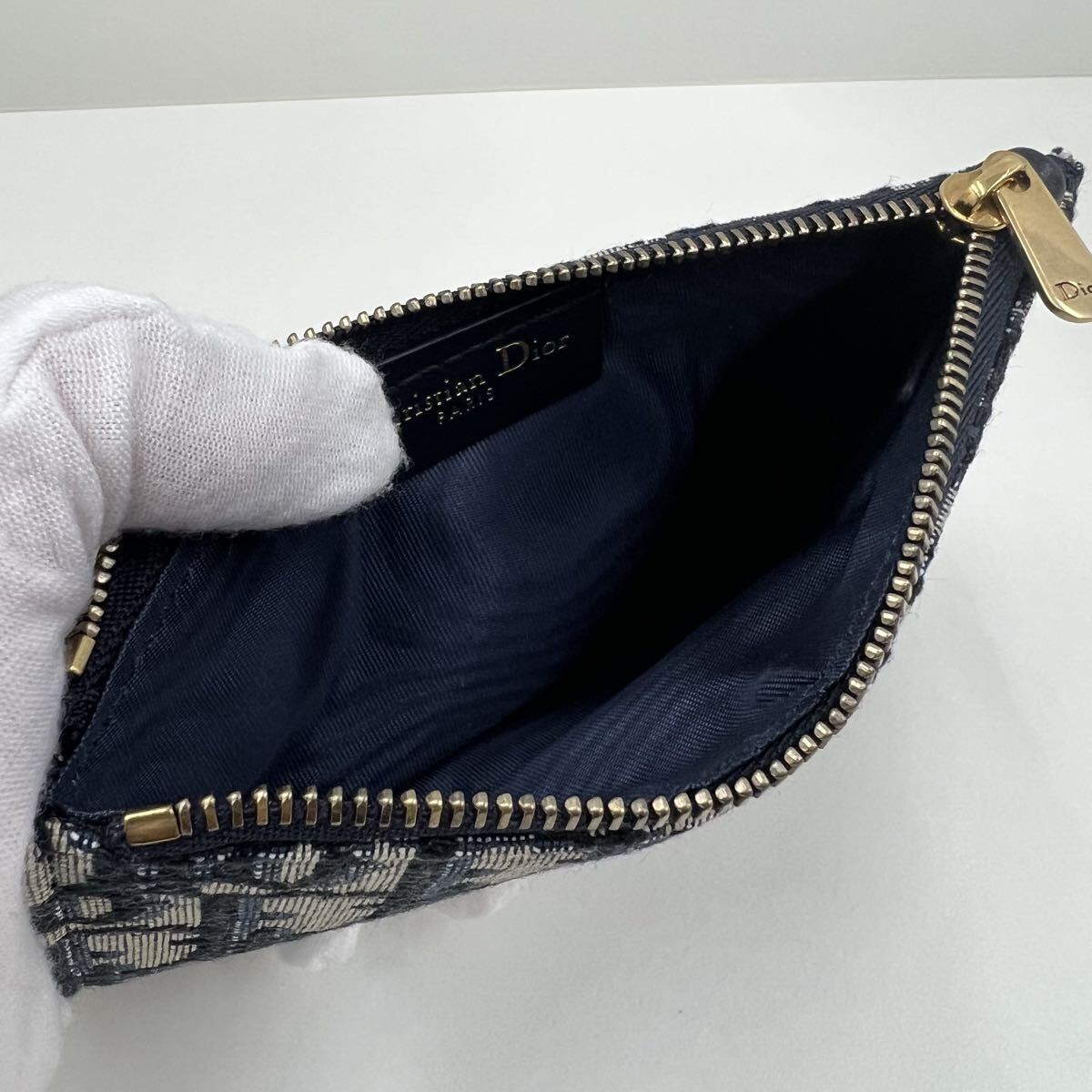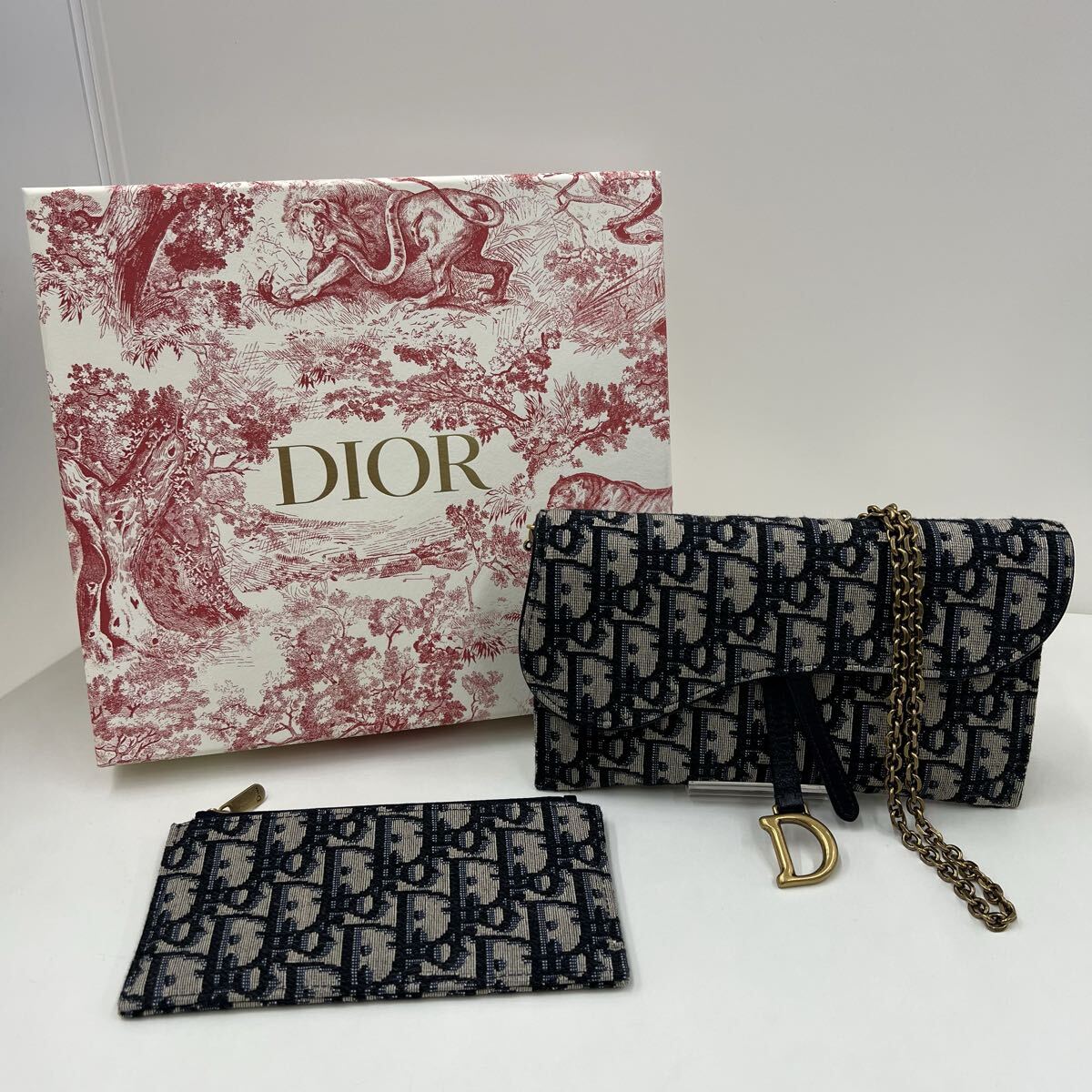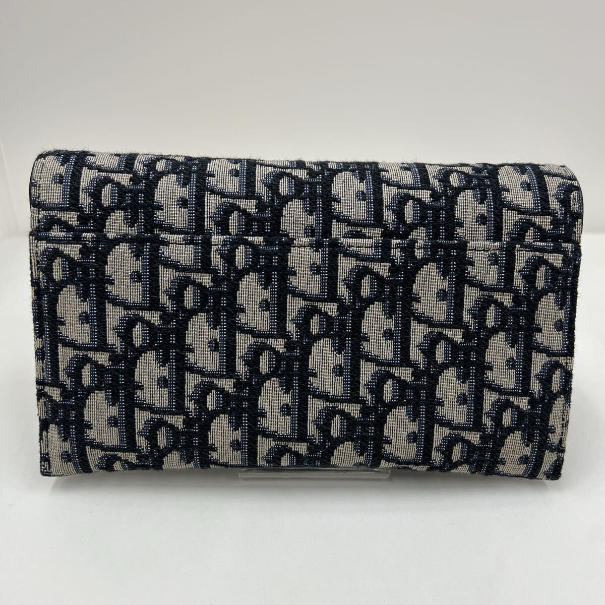 美品 Christian Dior クリスチャンディオール サドル ポーチ ディオールオブリーク ジャカートキャンバス チェーン ネイビー バッグ