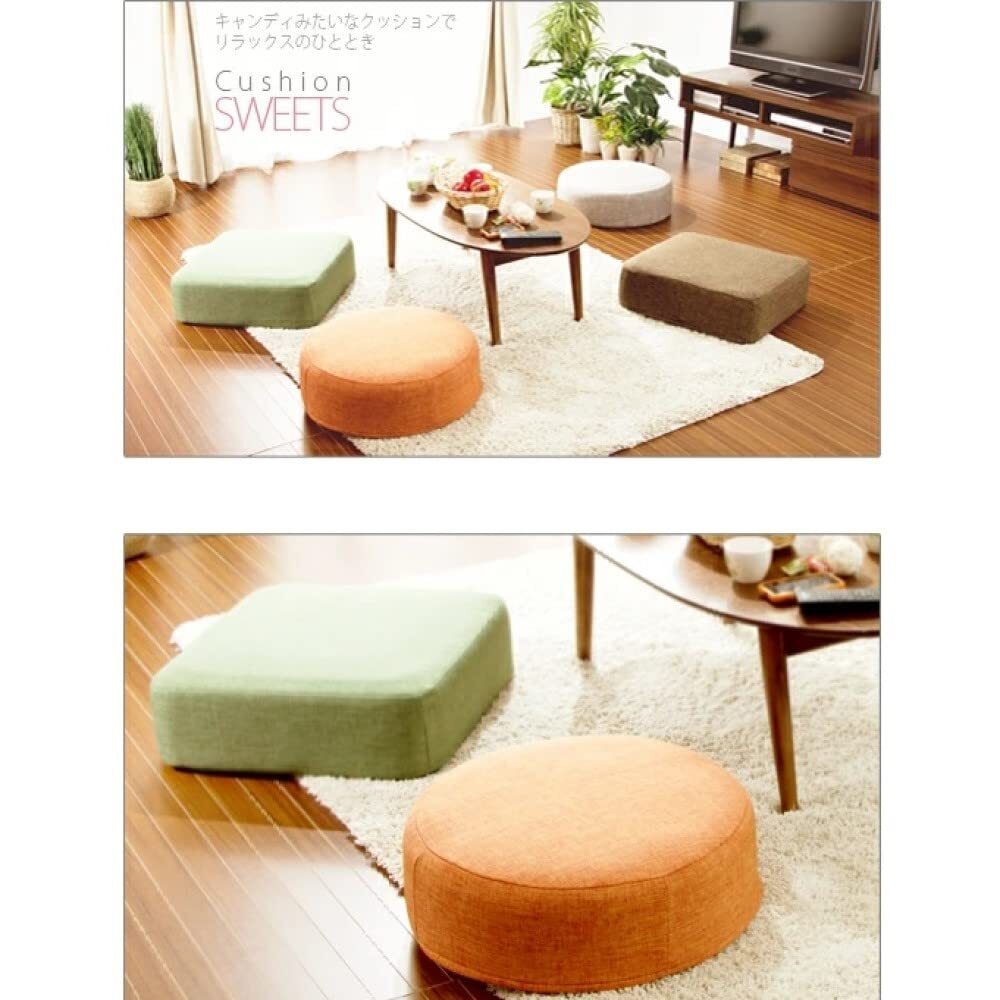 説明 日本製のキャンディみたいなクッションは来客時に座布団代わりとしても! 和室にも洋室にもあう万能低反発クッション