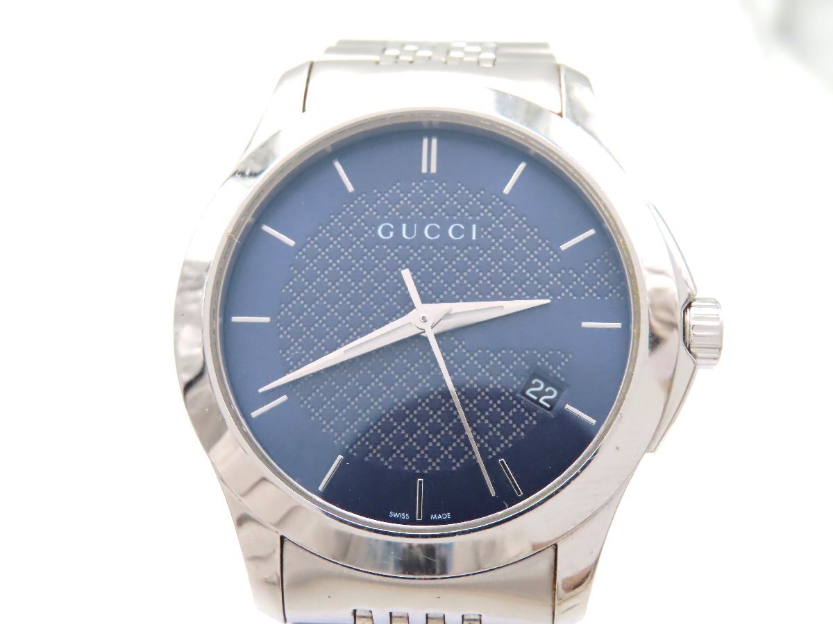 1円 グッチ 126.4 SS ネイビー文字盤 メンズ 稼働 QZ コマ6 29838 NNRB