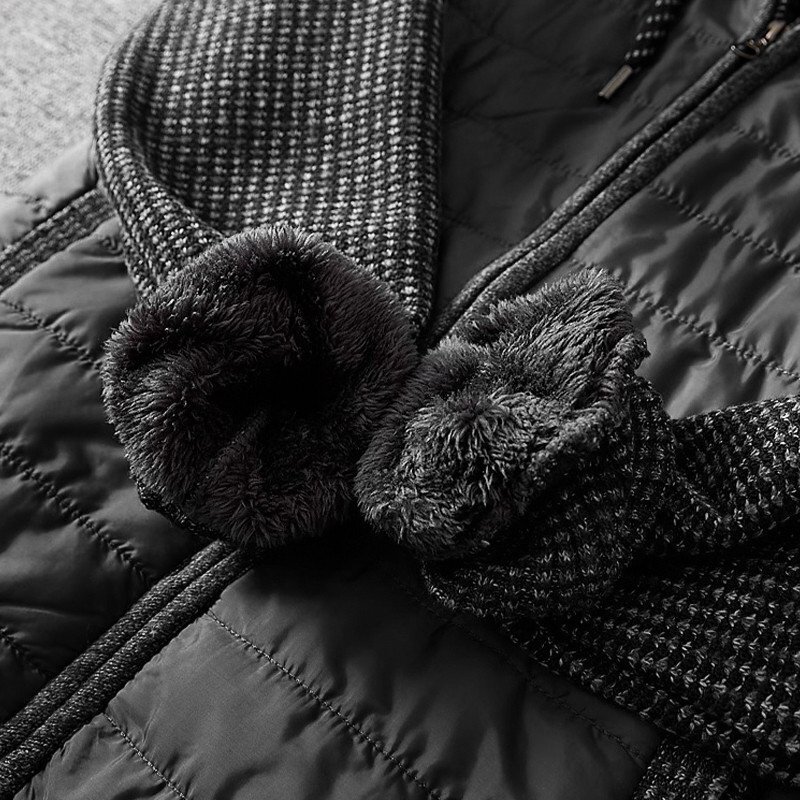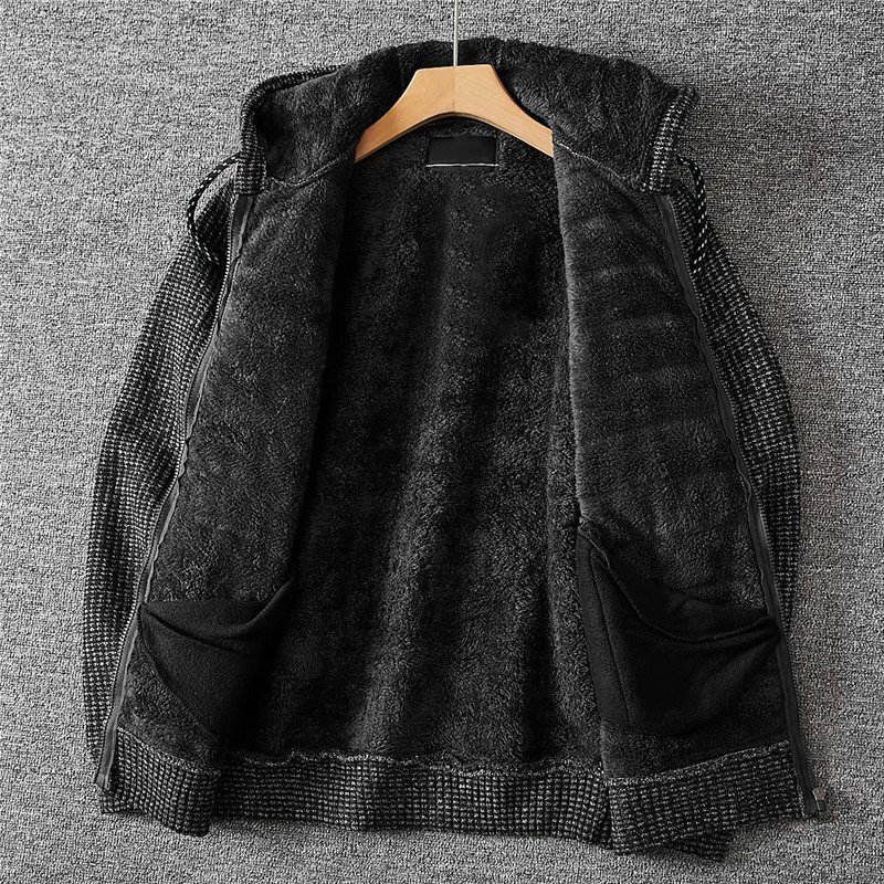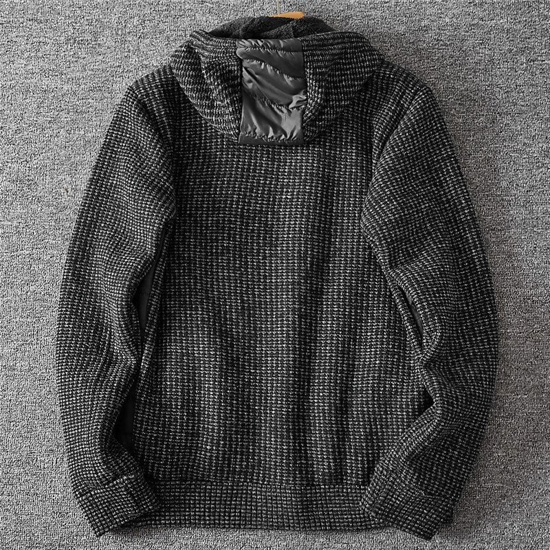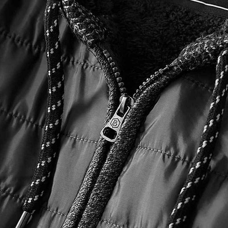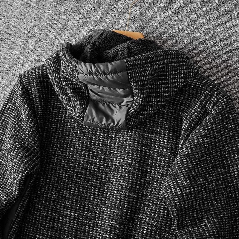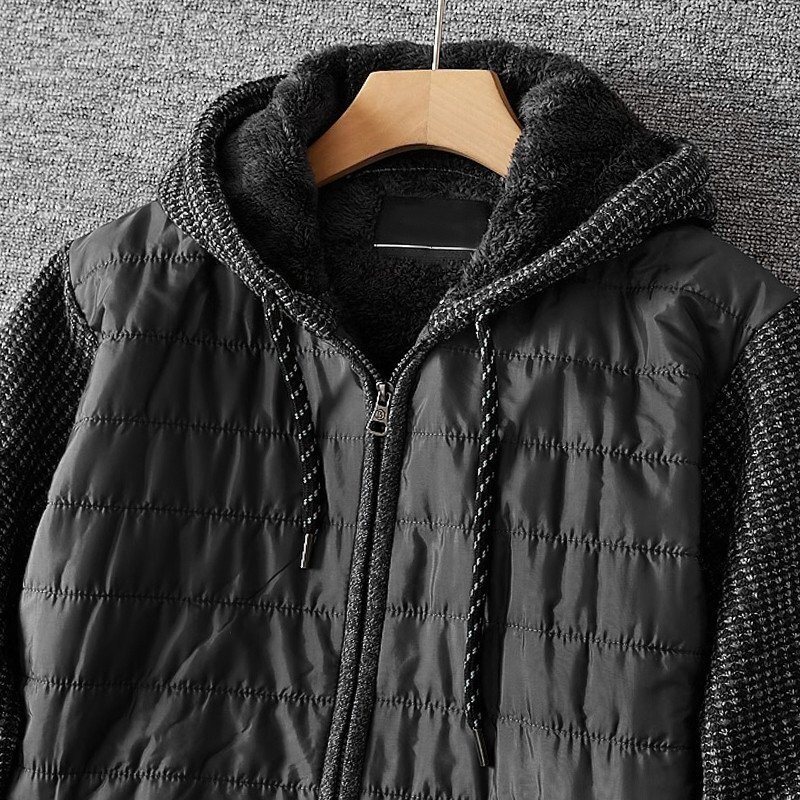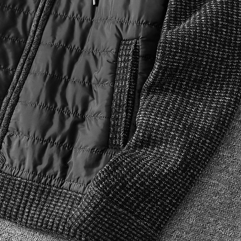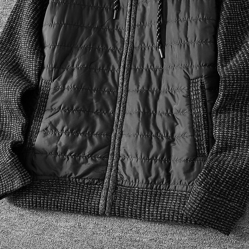 新品 国内未販売 ジャケット キルティング メンズ 裏ボア 中綿 秋冬 ニット ジャンパー ブルゾン フード付き 切替デザイン 厚手 極めて暖かい 黒