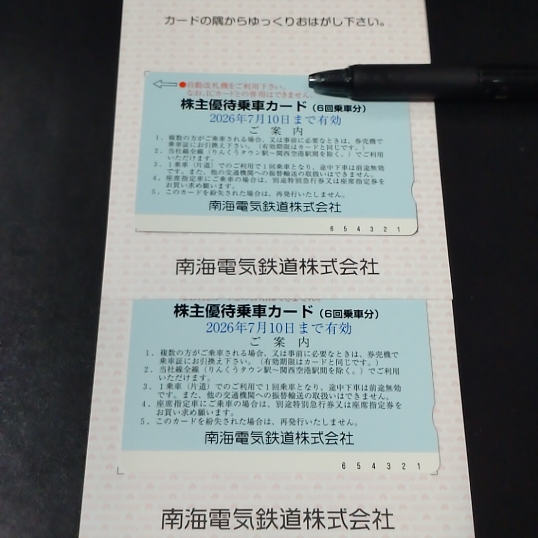 南海電鉄 株主優待乗車カード 6回分回数券×2枚