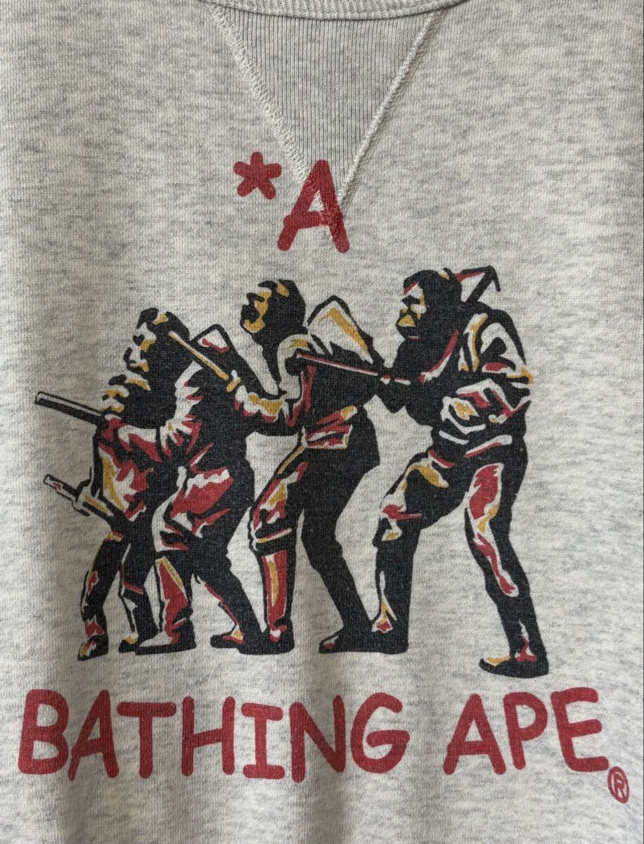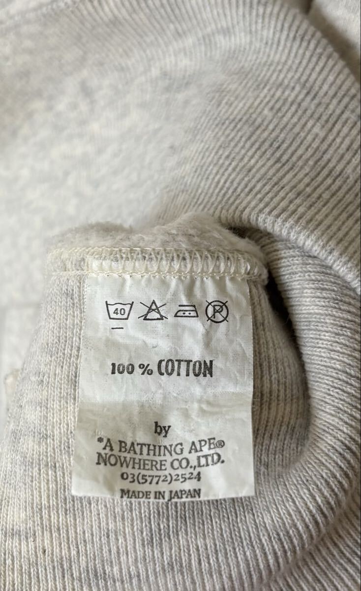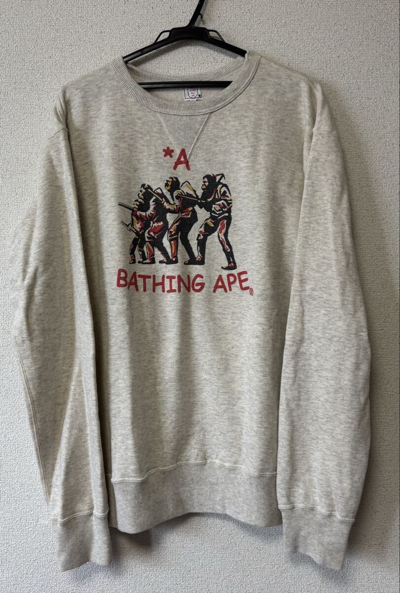 初期 A BATHING APE アベイシングエイプ スウェット L BAPE エイプ 90s ライトグレー パーカー 猿迷彩 シャーク マイロ スウェットシャツ