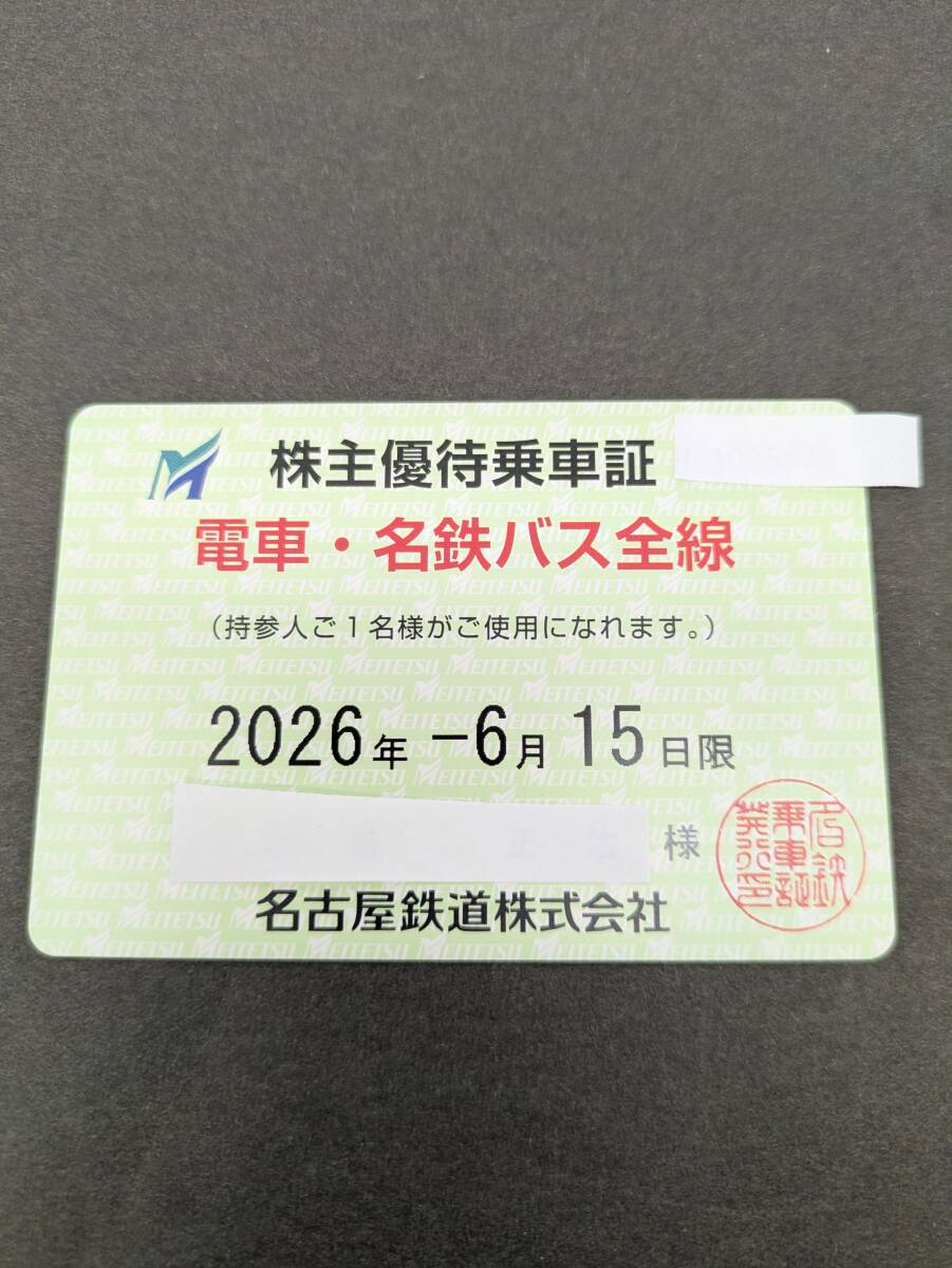 名鉄 株主優待乗車証 電車・名鉄バス全線 2026/6/15まで有効