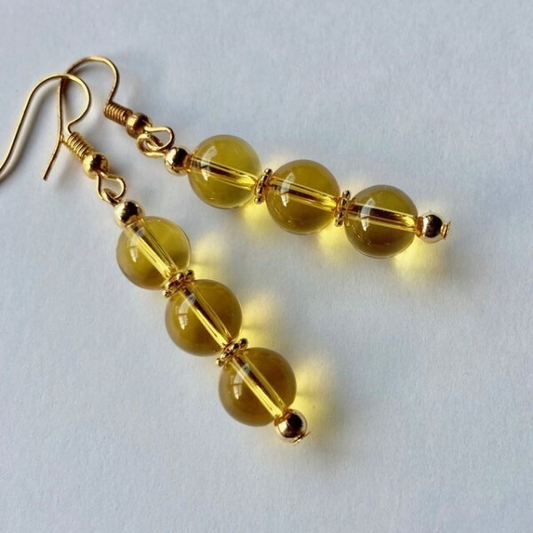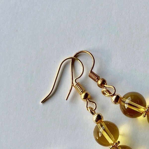 シトリン ピアス フックピアス 8mm (ゴールド) イヤリング、樹脂フック変更可 樹脂ピアス シンプル ハンドメイド