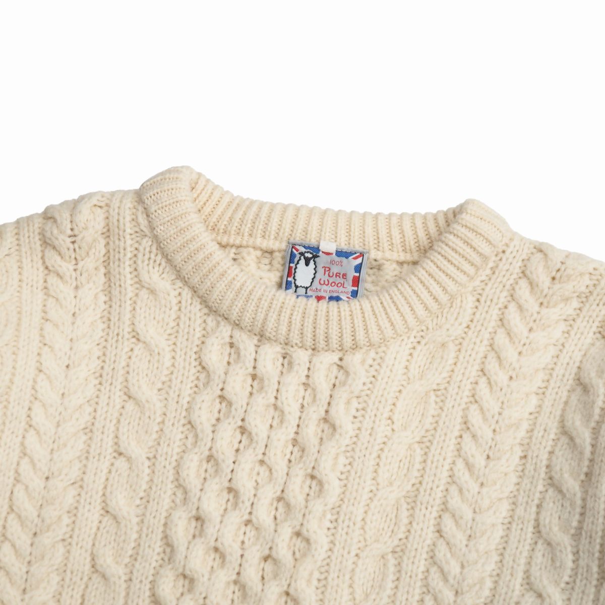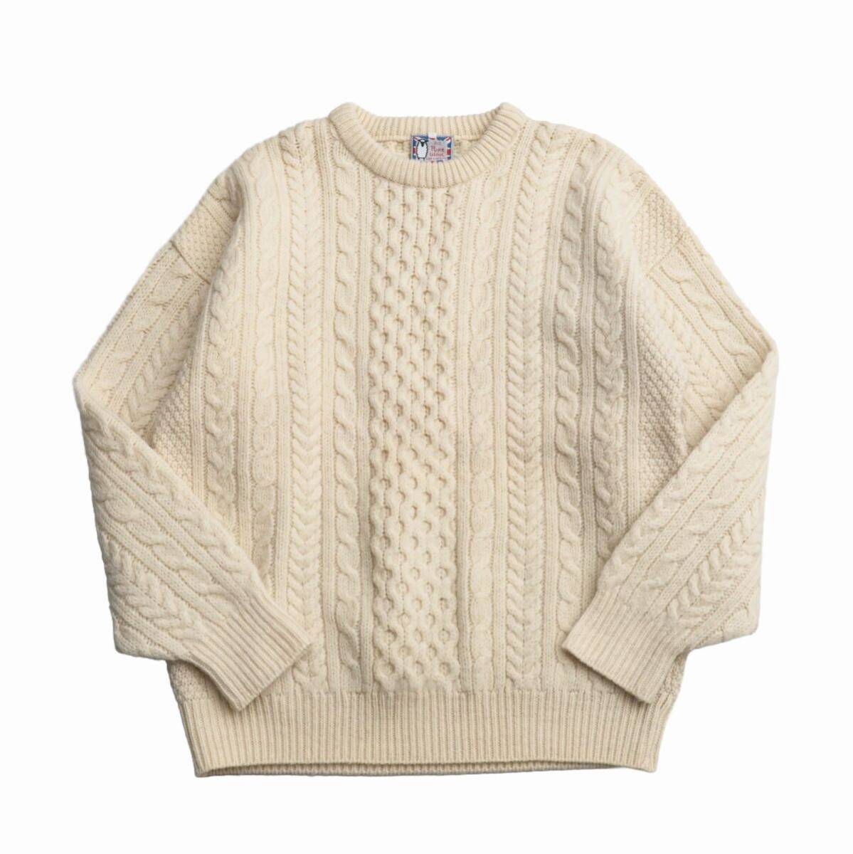 | TJ7610+イングランド製*メンズL*アランセーター*フィッシャーマンセーター*ウールニット*クルーネック*ケーブル編み | |||