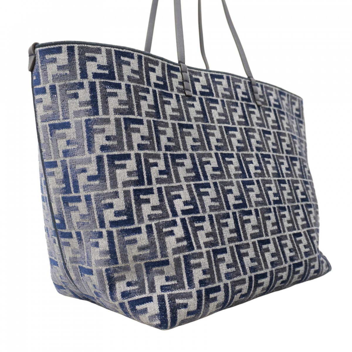 ★SALE【5oe4965-h】フェンディ トートバッグ ジャガードベルベット ネイビー ゴールド金具【中古】レディース