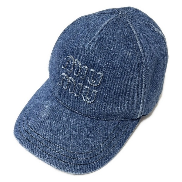 ミュウミュウ miumiu キャップ 57 5H179 ベースボールキャップ コットン ブルー デニム 帽子