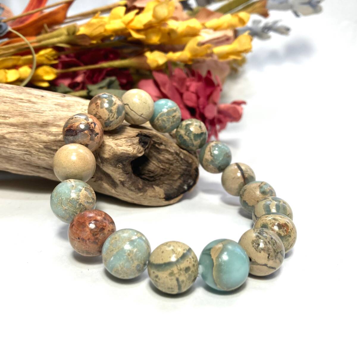 インプレッションストーン パワーストーン ブレスレット 12mm 天然石ブレス シンプル 数珠ブレス メンズ・レディース 男性 女性 癒し