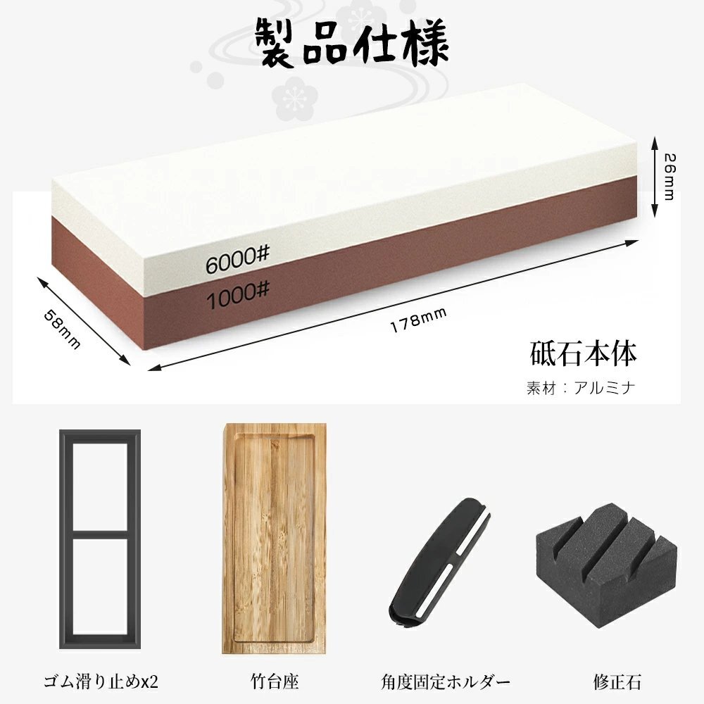 ◆【商品内容】: 砥石本体、ゴム滑り止めx2、竹台座、角度固定ホルダー、修正石 ◆【商品特徴】: