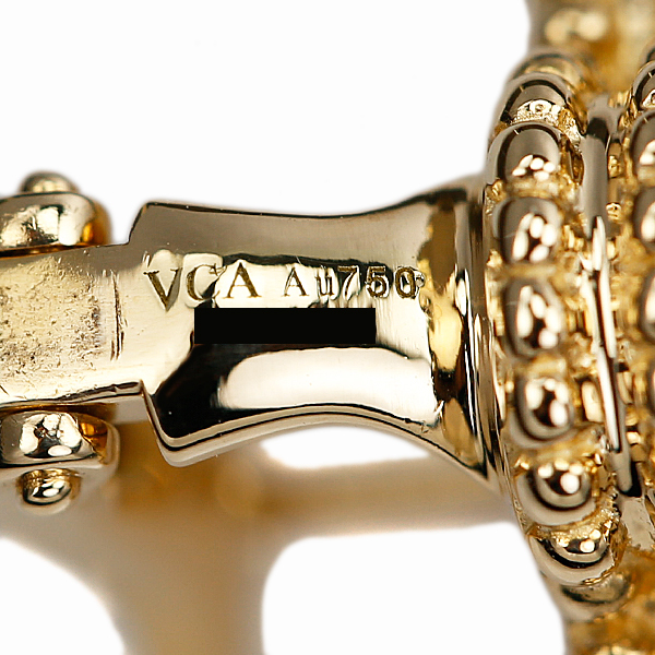 商品名ヴァンクリーフ&アーペル シェル ヴィンテージアルハンブラ ピアス K18イエローゴールド Van Cleef & Arpels クローバー 四葉 花 フラワー 植物 ボタニカル ミル打ち ミルグレイン