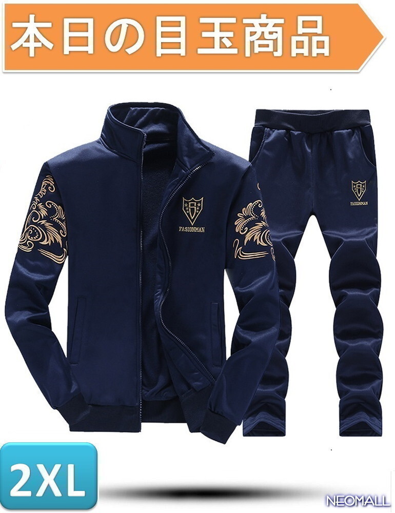【今日の目玉】メンズセットアップ 上下セット ☆300 ネイビー 2XLサイズ ジャージ スウェット お兄系 部屋着 おしゃれ