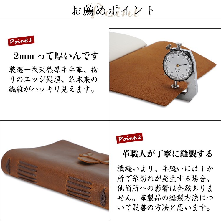 コメント: 天然一枚牛革製手帳、お薦め売りポイントが三つ: