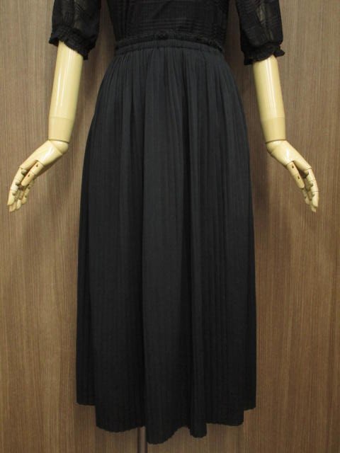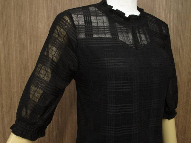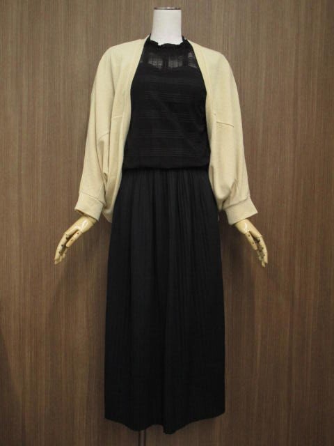 長袖モモンガカーディガン+五分袖プルオーバーブラウス+ロングプリーツスカート コーディネート上下3点セット M相当 ベージュ系/ブラック チェック/ブラック ガーリー・カジュアル系 20代~