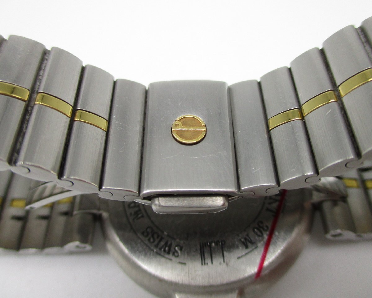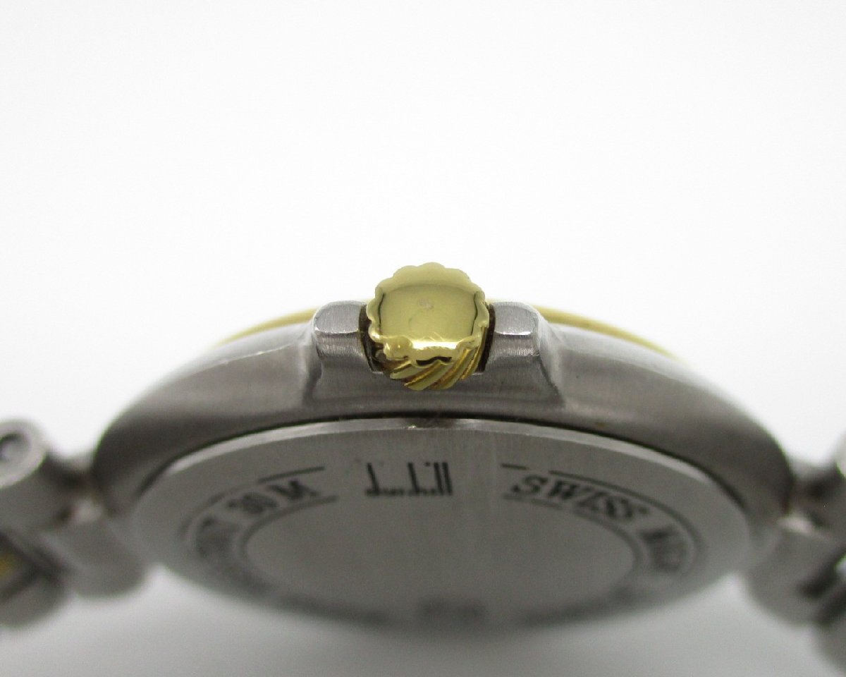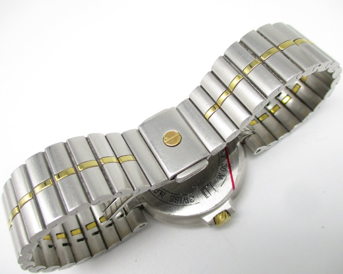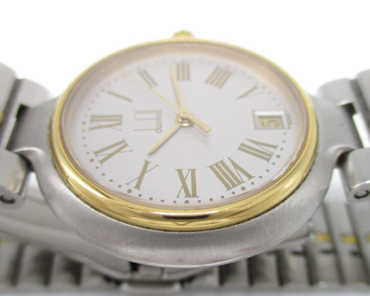 | dunhill ダンヒル ミレニアム クォーツ ブレスが観音開きになる、後期タイプです。 【およそのサイズ】ケース径:32mm 腕回り:19cm 【状態】ガラスは無傷です。文字盤に汚れは見られません。ケース、ブレスは小傷、スレ程度で美品レベルだと思います。 クォーツ時計の入っている電池はモニター電池扱いでお願いいたします。発送までに止まった場合は電池交換後、発送いたしますが、その後の電池切れの際は、落札者様御自身でメーカーもしくは一般店に電池交換にお出しください。 【付属品】箱・保証書等は無く、時計のみです。 | ||||