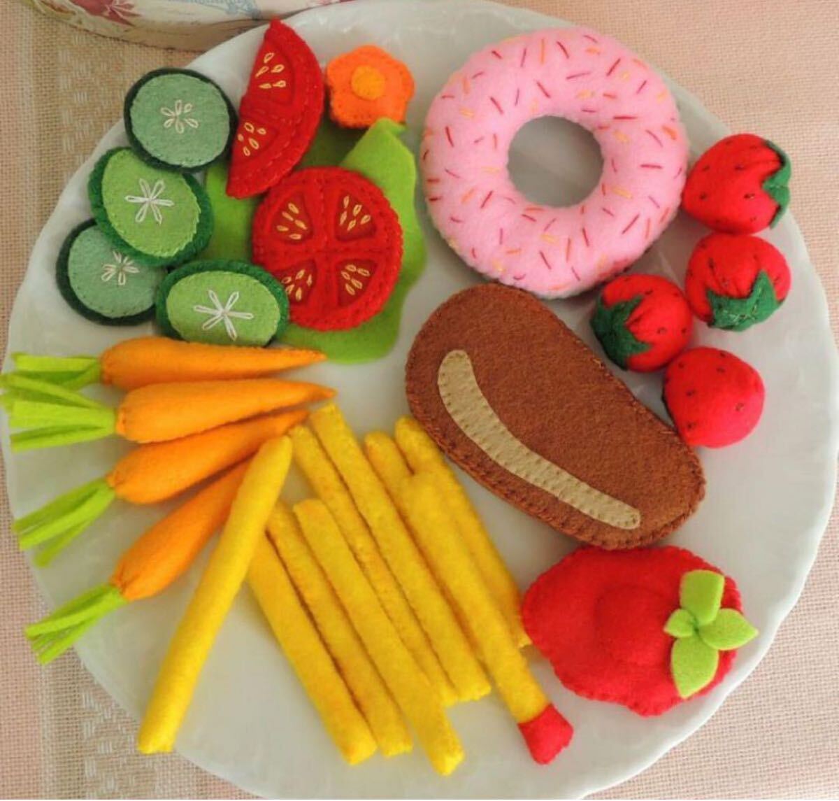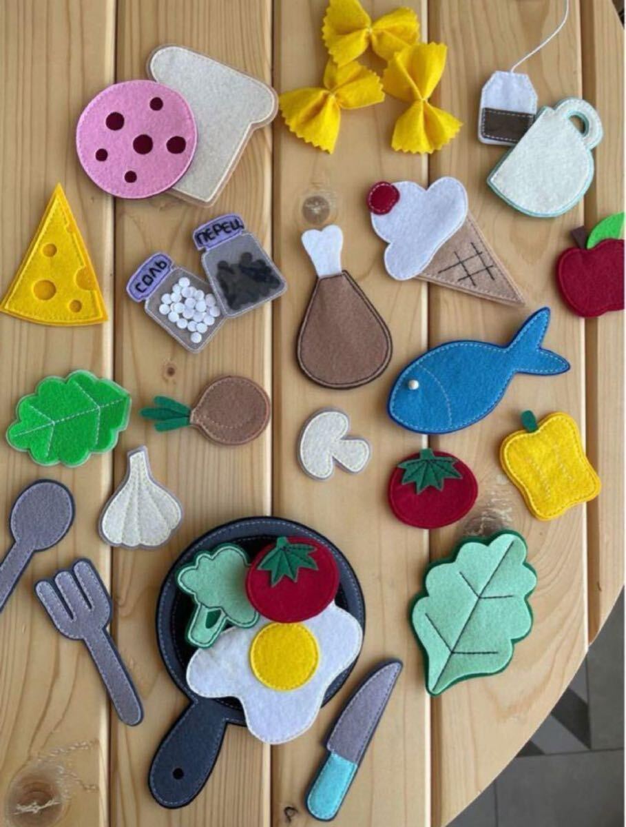 - デザイン: 食べ物の形のフェルト素材