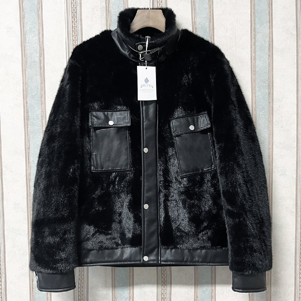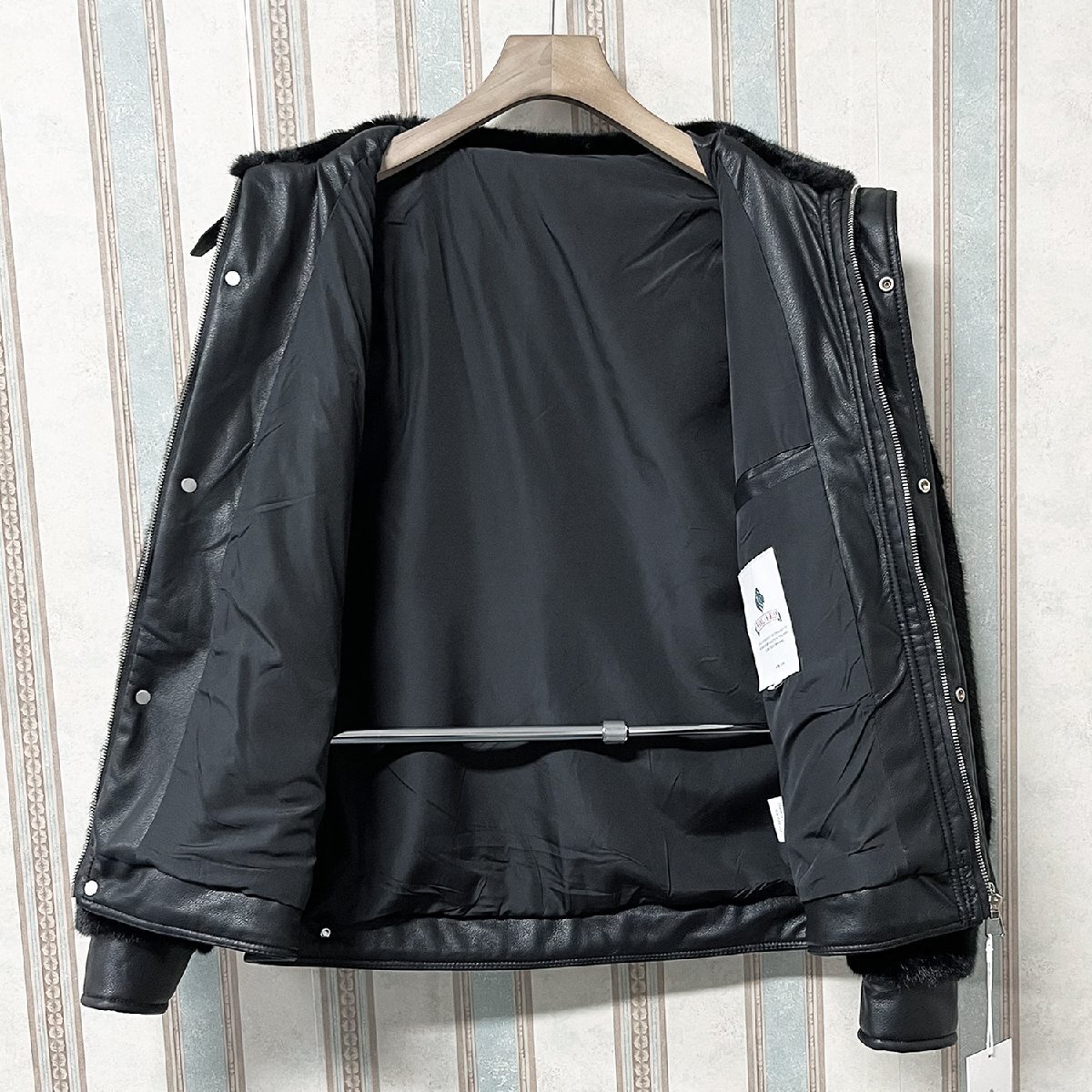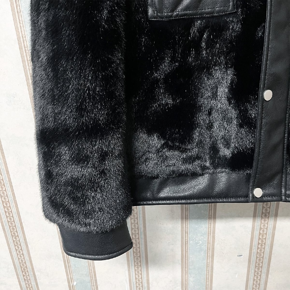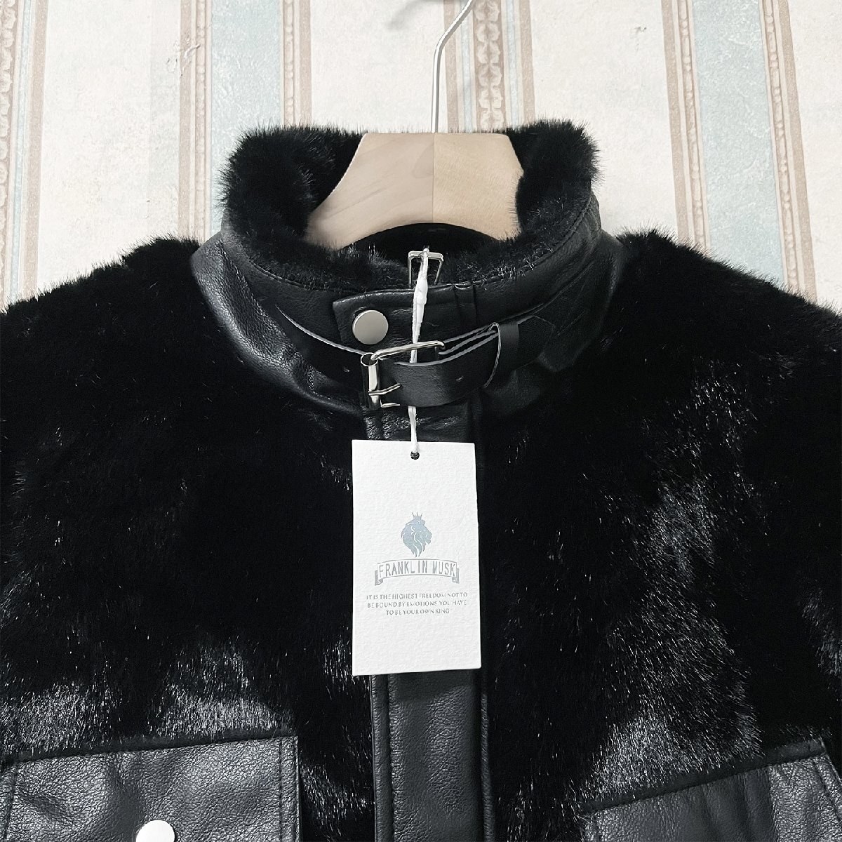 ミンクとレザーの異素材切替デザインを施したトレンド感のあるデザイン。ファー付き立ち襟で首元まで暖かく、さらに調節可能なベルトが付いており、冬の冷気の侵入をうまく防ぐことができ、いつも暖かい着心地を与えくれます。また、ボタン付き胸ポケットが2つあり、携帯電話や財布などの小物を簡単に出し入れでき、落としたり盗んだりしにくいです。