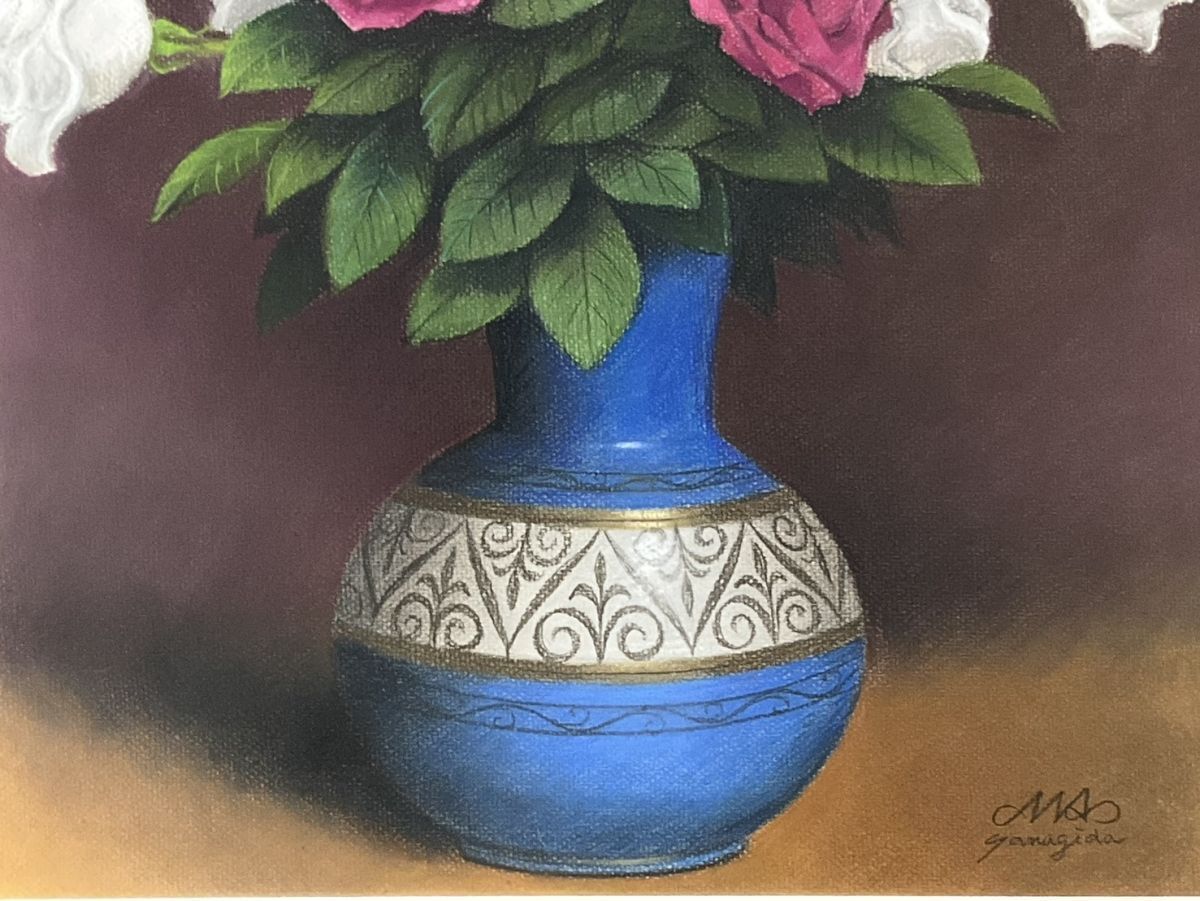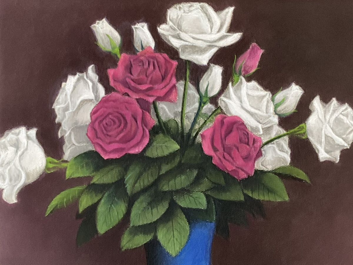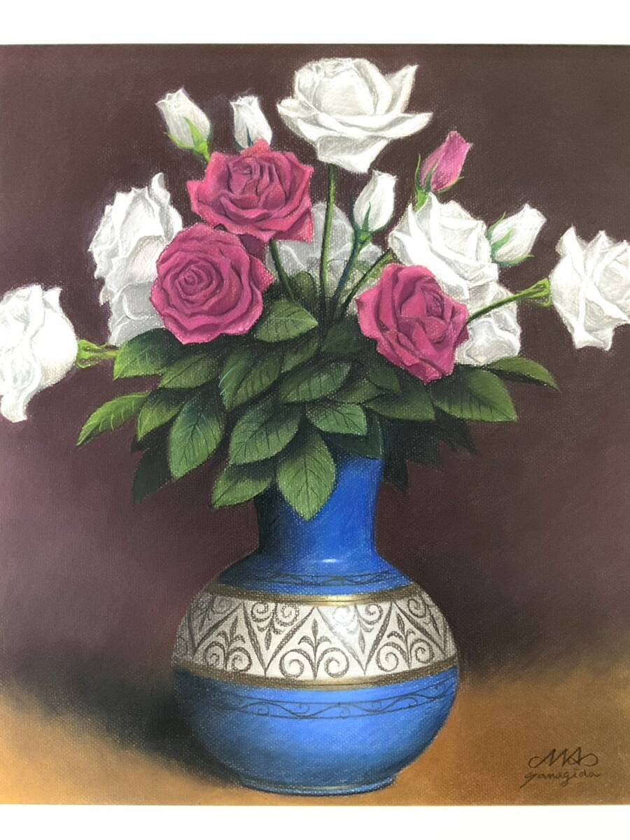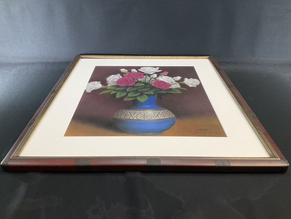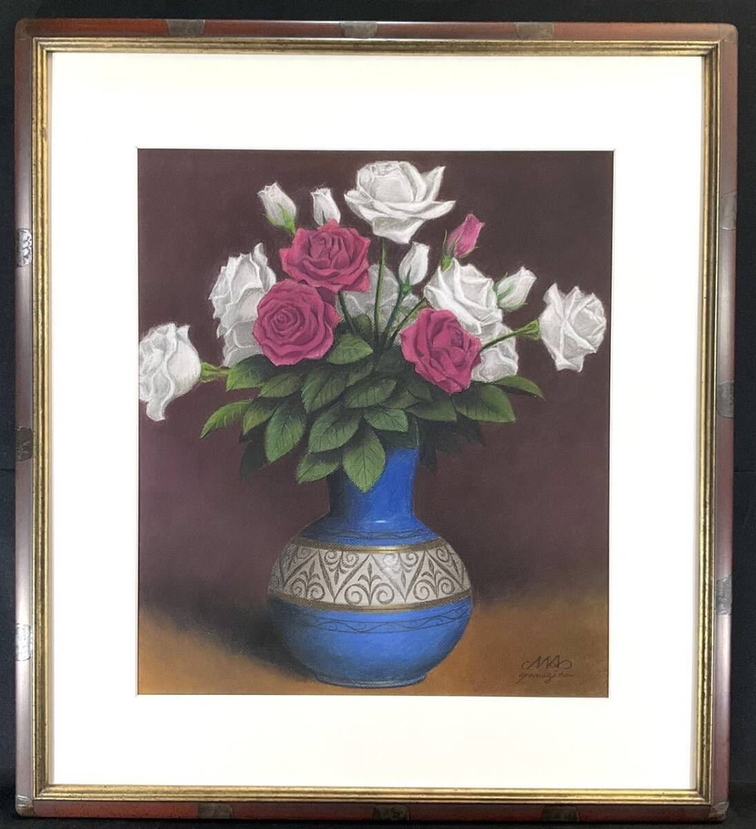 真作■パステル■柳田正和■『バラ』■10F■リアリズム人気作家・イラストレーター■額付絵画