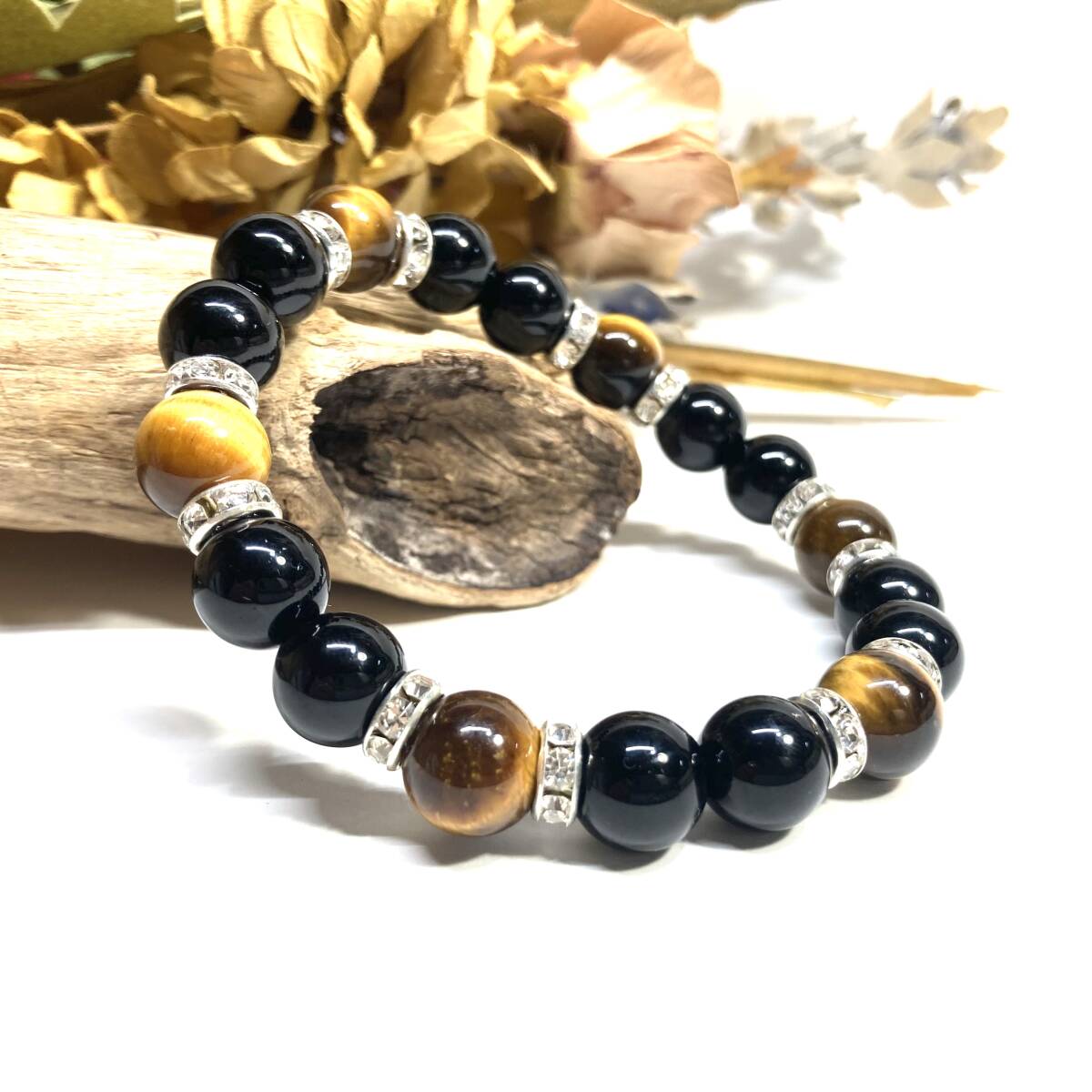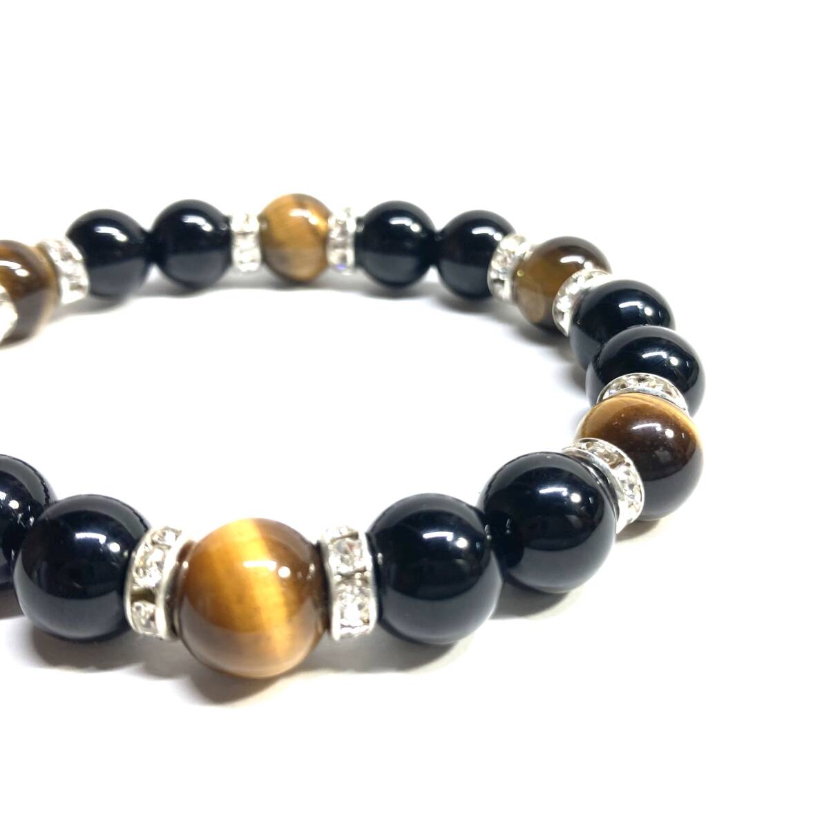 こちらは、モリオンとタイガーアイを組み合わせたパワーストーンブレスレットです。間にはロンデルを挟み高級感あるデザインに仕上げております。石大きさは腕にも馴染みやすいように10mm玉で内周 約18cm(伸可能)です。(サイズ変更の場合は取引ナビにてご連絡をお願いします。) 数に限りがございますので気になる方はお早めにどうぞ。