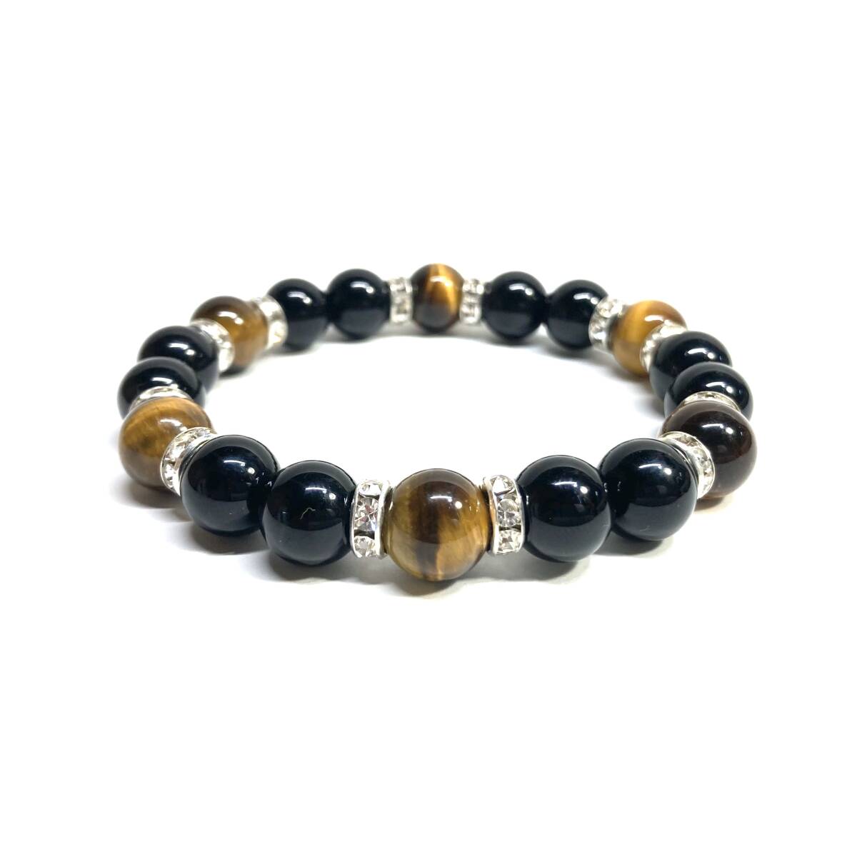 モリオン&タイガーアイ パワーストーン ブレスレット 天然石ブレス (シルバー) 10mm メンズ・レディース 厄除け 金運 ☆