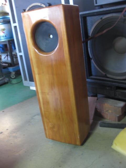 ●ユニットは稀少な蝶ダンパー、アルニコグルンデッヒ16cmでエンクロージャーは桜の無垢材25mm厚、ウレタンニス仕上げ裏板は15mmアピトン合板を3分割して低音の出方を調整できます。主観ですが古いユニットで中高音がきれいです。状態は画像で確認してください。