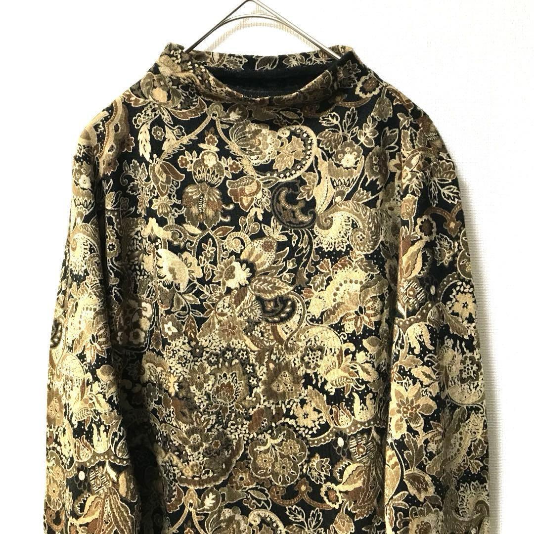 上品なゴールド×ブラック系のクラシカルな柄が高見えし、ジャケットのインナーとしても映えます。