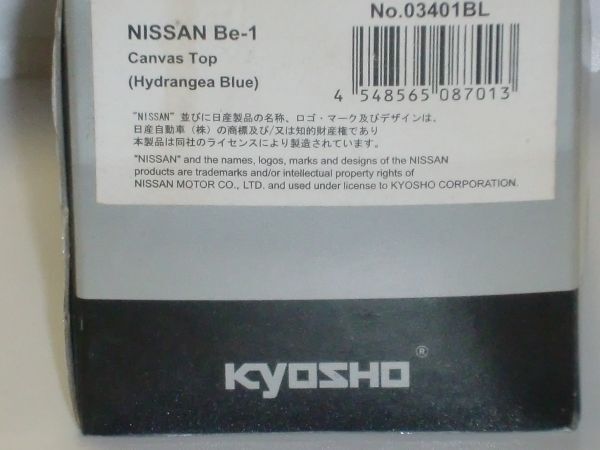 〇1/43 京商 NISSAN Be-1 Canvas Top 青です。箱に少し痛みがありますので、ご了承の上入札下さい。商品の状況は写真でご判断の 上、ノ-クレ-ム・ノ-リタ-ンでお願いします。保証はできませんが、定形外郵便での発送も可能です。
