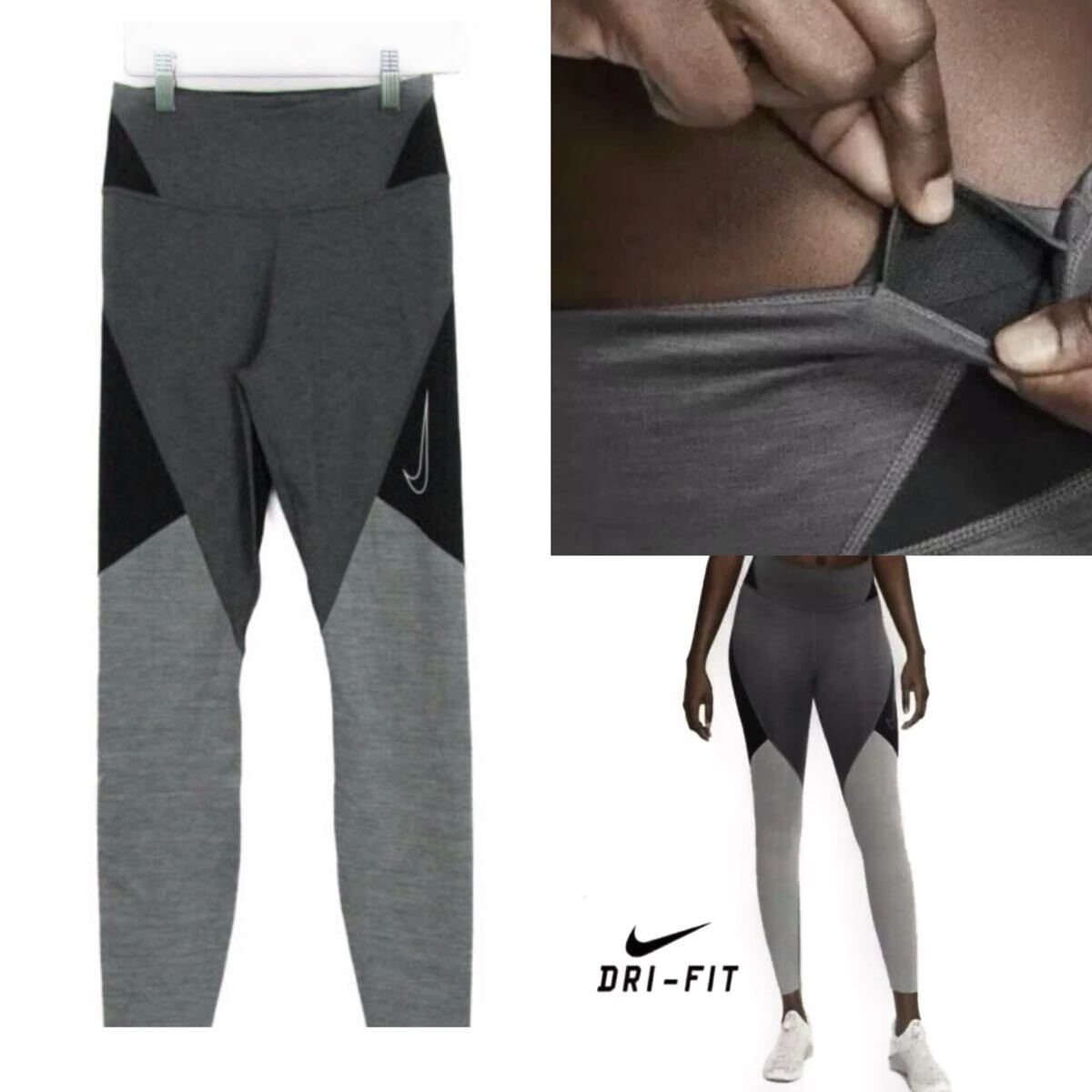 DRI-FIT素材を使用したスリムフィットのグレーとブラックのタイツ。