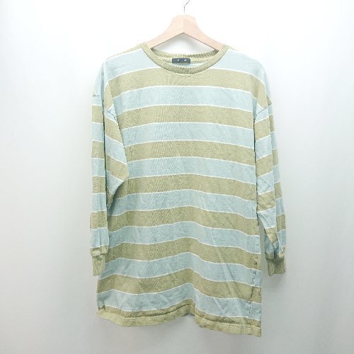 ◇ JEANASIS ジーナシス ボーダー ラウンドネック カジュアル 長袖 Tシャツ サイズF グリーン/ブルー レディース E