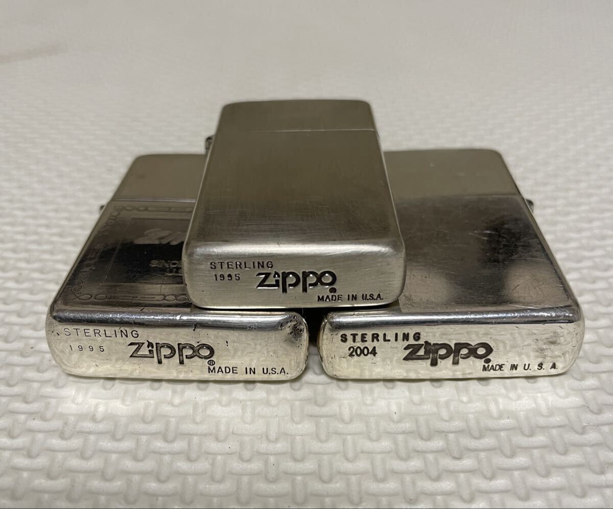 zippo製 ジッポライター STARLING スターリングシルバーのさまざまな年代の計3点(1つはスリムタイプ)まとめ売りです。全て火花確認しておりますので、オイルを入れれば着火すると思います。