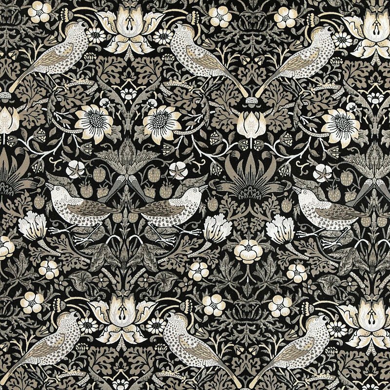 ベスト・オブ・モリスのエレガントなデザインが特徴のストロベリーシーフがブラックとクリームに彩色されています