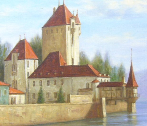 | 作品名 | 手書き油絵 ★歴史ある湖畔の城★ |