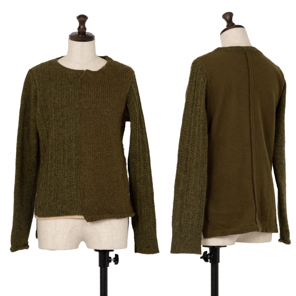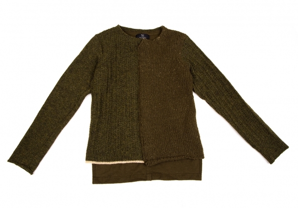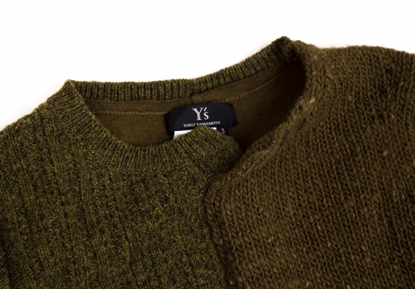 | ワイズY's ウールパネル切替ニットセーター オリーブ3 |