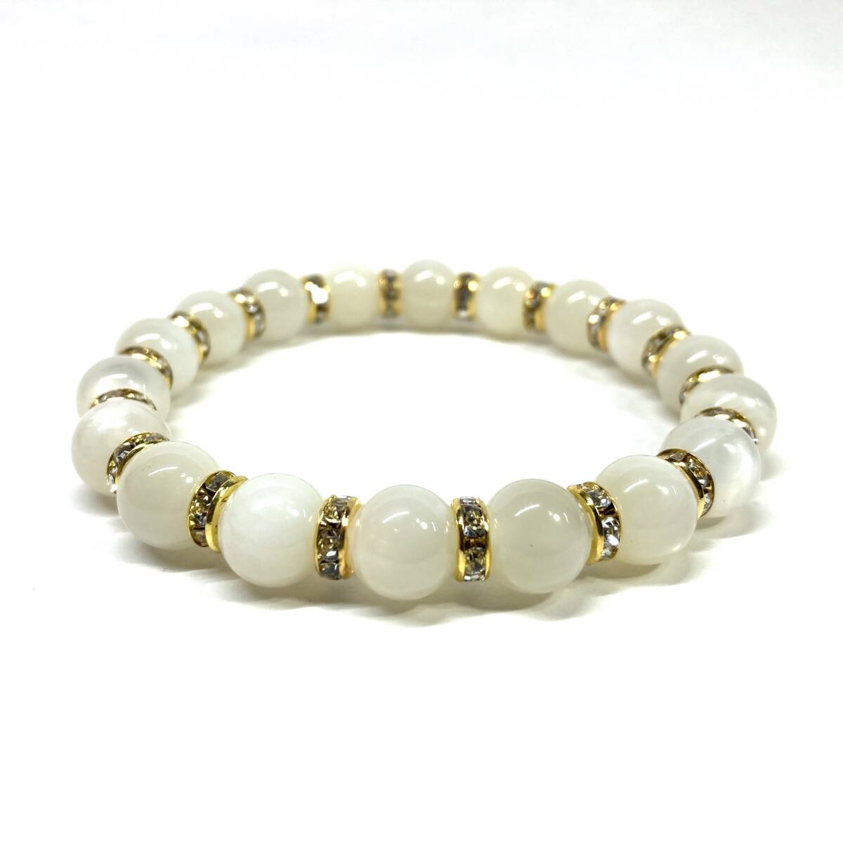 ムーンストーン パワーストーン ブレスレット 10mm 天然石ブレス (ゴールド) 数珠ブレス メンズ・レディース 男性 女性 幸運 開運 浄化♪