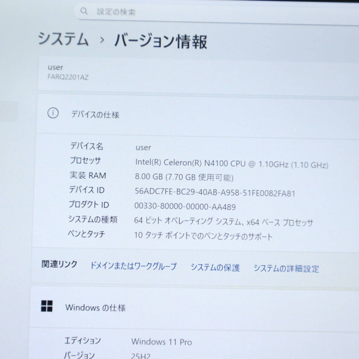 ★超美品 SSD128GB メモリ8GB★Q509/VE Webカメラ TypeC 高解像度 Celeron N4100 Win11 MS Office 中古品 ノートパソコン★P94423