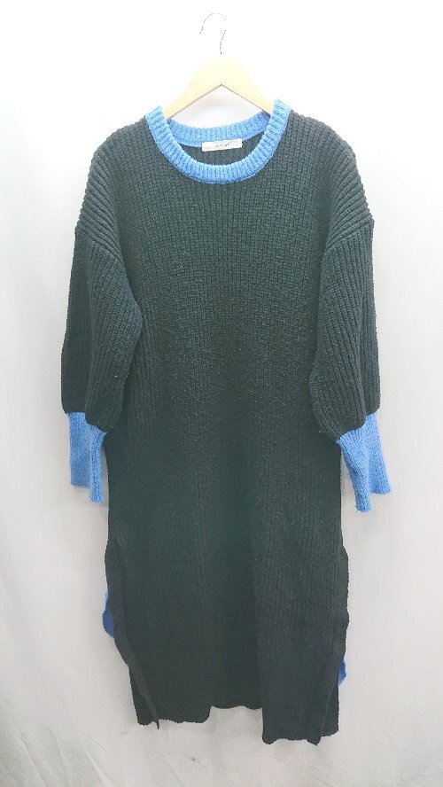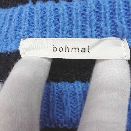 ◇ ⊇ bohmal ボマール ニット 長袖 ロング丈 ワンピース サイズF ブラック ブルー レディース E