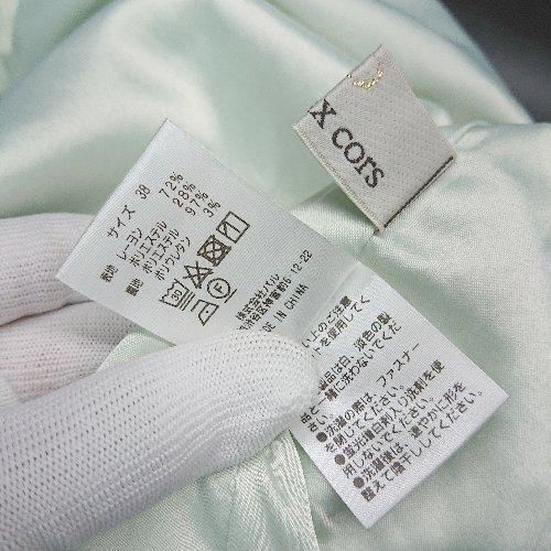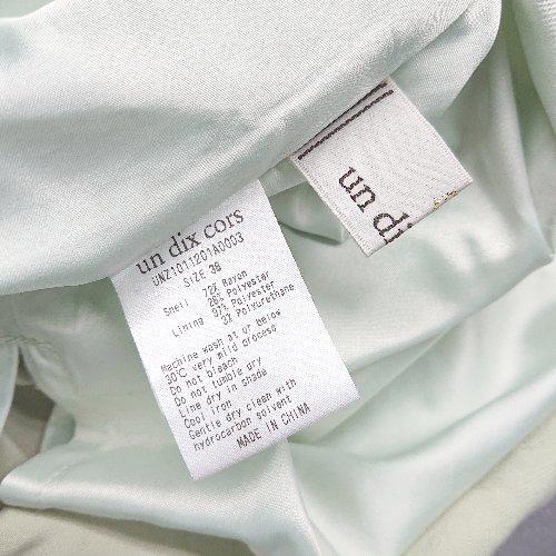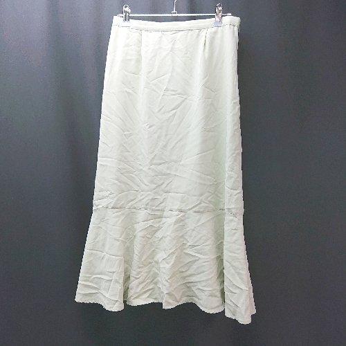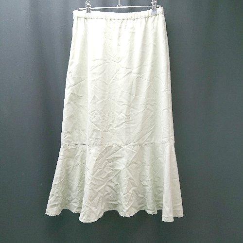 ◇ un dix cors ウエストゴム サイドジップ 裏地 薄手 シンプル ひざ丈 フレア スカート サイズ38 グリーン レディース E
