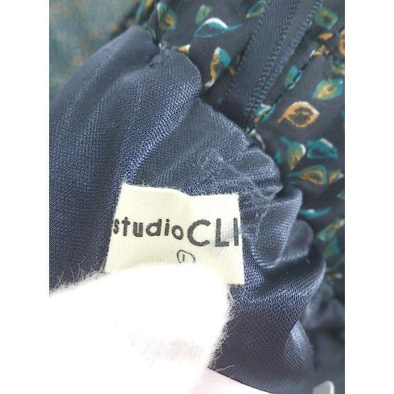 ◇ studio CLIP 総柄 ウエストゴム ロング ギャザー スカート サイズL ネイビー グリーン マルチ レディース